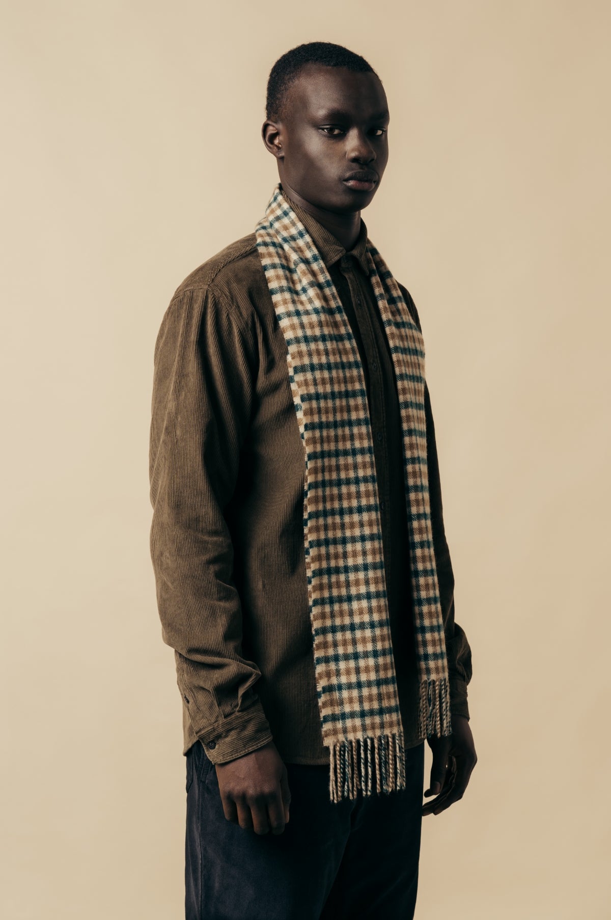 The Selkirk Scarf, named after the area in south-eastern Scotland that inspired it, is woven in one of Scotland’s most prestigious mills from super soft 100% lambswool. The Pine/Tan Check pattern adds a classic touch to this luxurious piece.