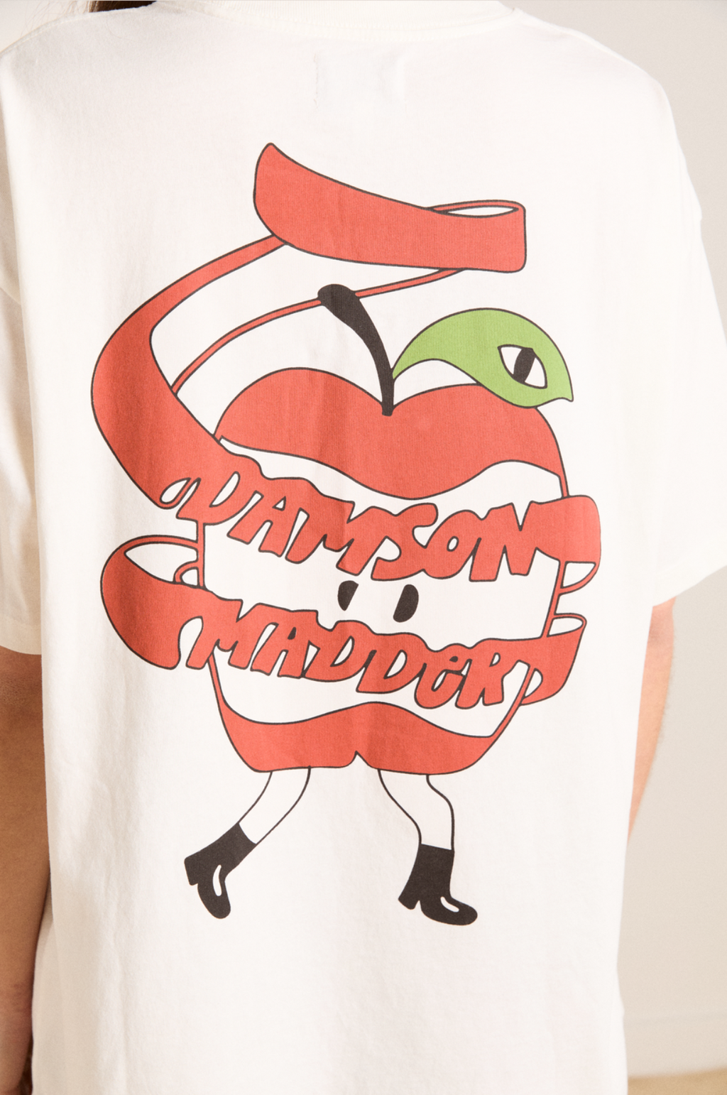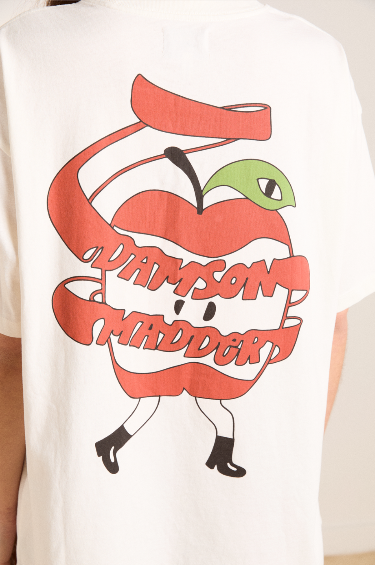 An oversized white t-shirt from Damson Madder with playful apple graphics - this is a great top for relaxed days. Crafted from a wonderfully soft cotton jersey, it features a crew neck, drop shoulders, and short sleeves. Pair with comfortable shorts and your favourite trainers.