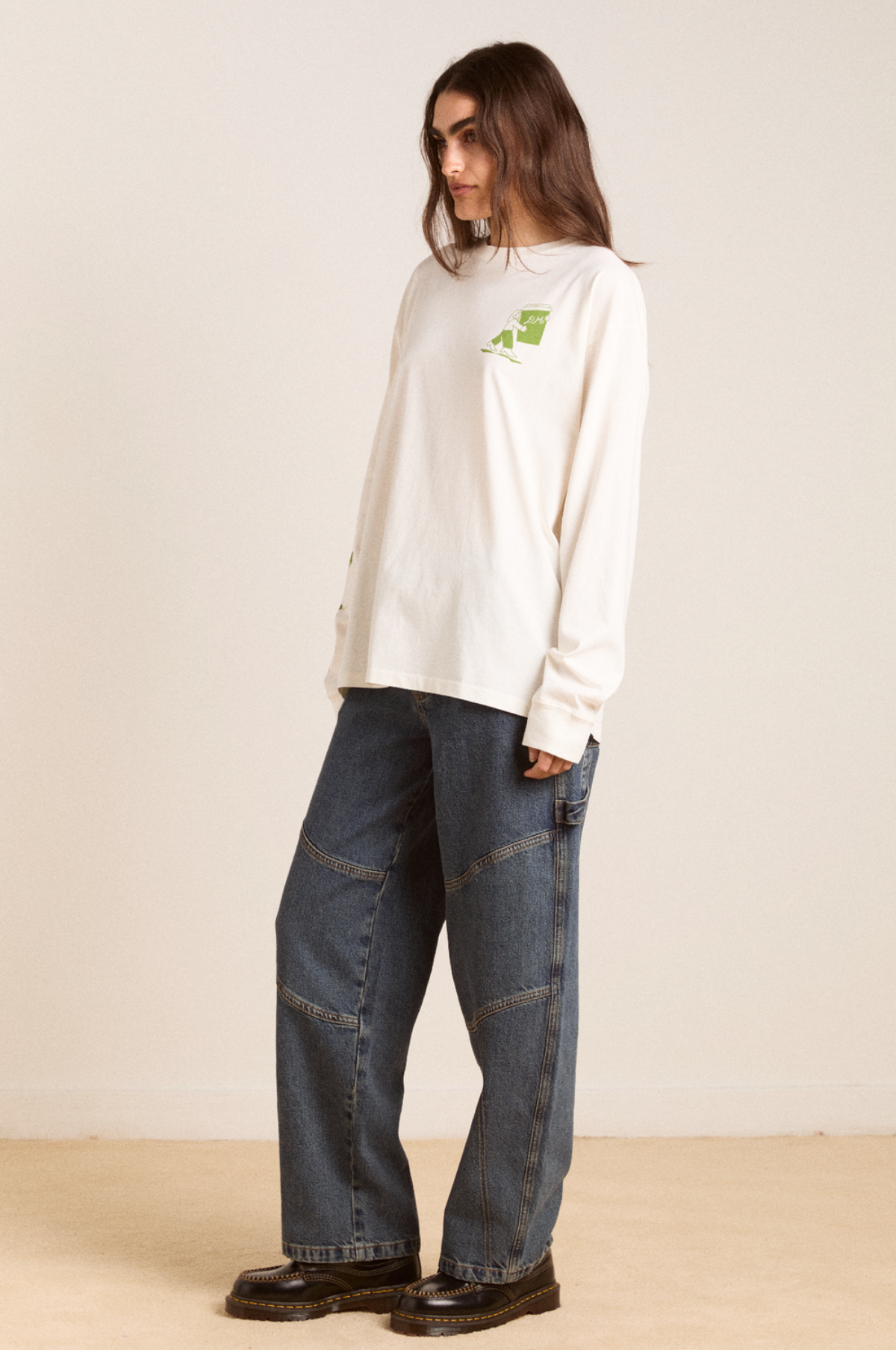 Crafted from 100% organic cotton, you'll reach for this long-sleeved white graphic tee from Damson Madder time and again. Designed for a relaxed, oversized fit this top features thoughtfully placed graphic prints on the front and back for a playful touch.