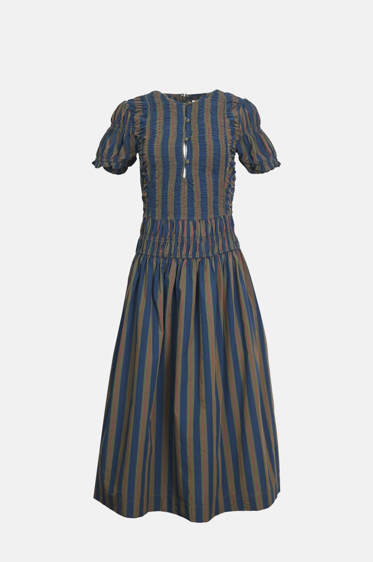 Sienna Shirred LS Midi Dress Olive Stripe