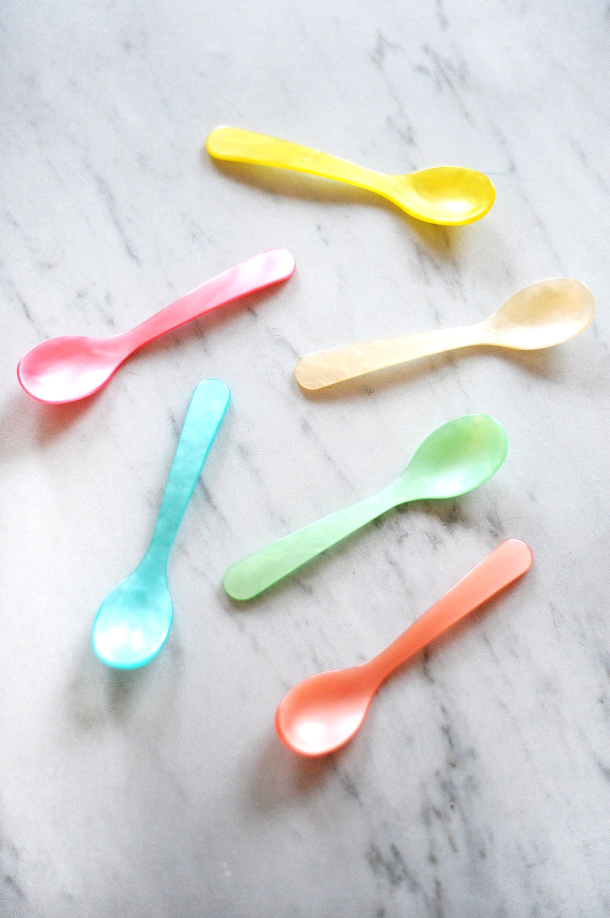 An egg spoon is somewhere in life to have a little joy and something a bit different! Not everything has to match. These adorable acrylic egg spoons will add a splash of colour to your morning soft-boiled! (although I can't imagine us stopping with an egg: ice cream? coffee?...).