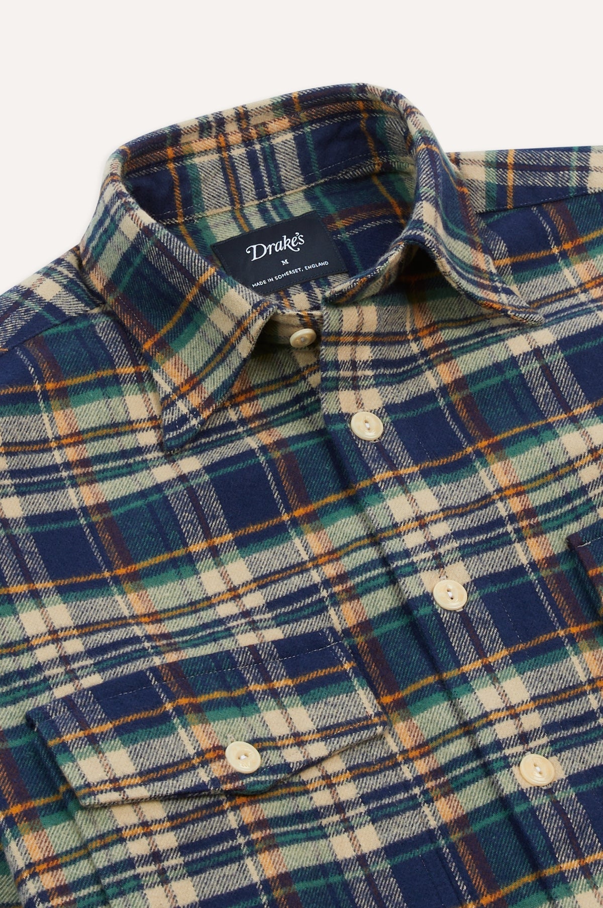 Cut from a brushed cotton, it features a curved hem, single-button cuffs, and two flap pockets, perfect for keeping essentials close without weighing down your trousers. Every detail, from the fisheye corozo buttons to the single-needle construction, reflects Drake’s hallmark attention to quality.