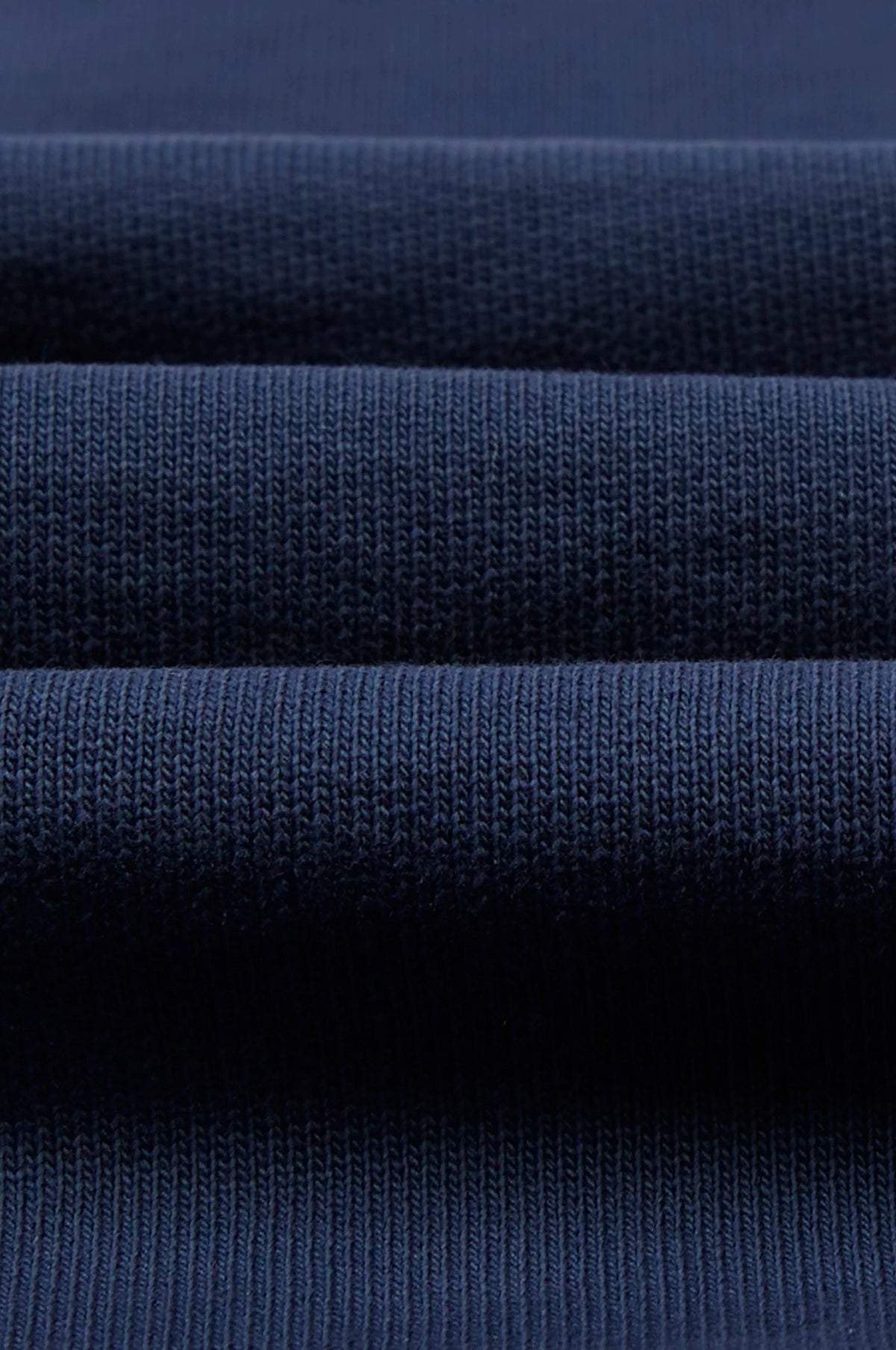 The LS Cotton Quarter Zip Sweatshirt Lt Navy is styled after vintage examples of mid-century running gear, this quarter zip sweatshirt is made from a densely woven 16.2oz cotton jersey and features ribbed cuffs, a kangaroo pocket, raglan sleeves, and our monogram motif, chain stitched in wool on the sleeve.