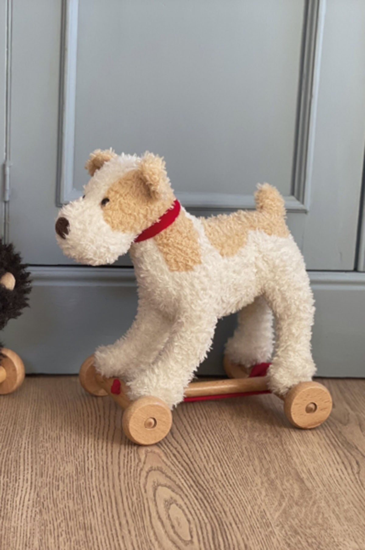 Meet Eliot, a charming (medium sized) little pooch, breed unknown but cuteness very much known! Dogs (real or otherwise) make the sweetest childhood companion and Eliot is so very loyal and happy that he will be sure to follow his owner wherever he goes on his little wooden wheels!