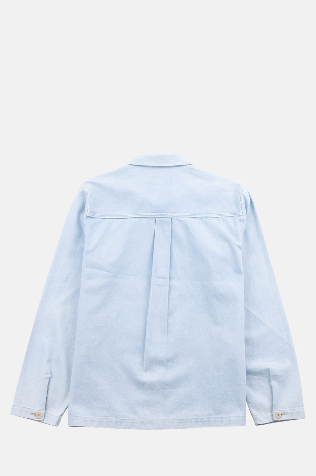 Folk offers style without drama using simple patterns with a focus on quality and textures to create approachable collections enriched by subtle details. The Meyer Shirt Jacket features a boxy and relaxed fit overshirt style with CF placket, Corozo nut button fastening, neat button down collar, raised piping detail on pockets and back yoke finished in a lightweight washed denim.