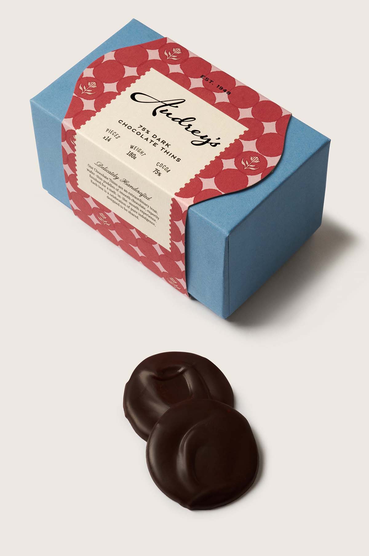 Artisanal chocolates handmade in Sussex, UK using Valrhona chocolate (certified B Corp) renowned for its quality and its 100% traceability from cocoa bean to chocolate. Audrey's is also a palm oil-free business and is proudly using only recyclable packaging across all products.