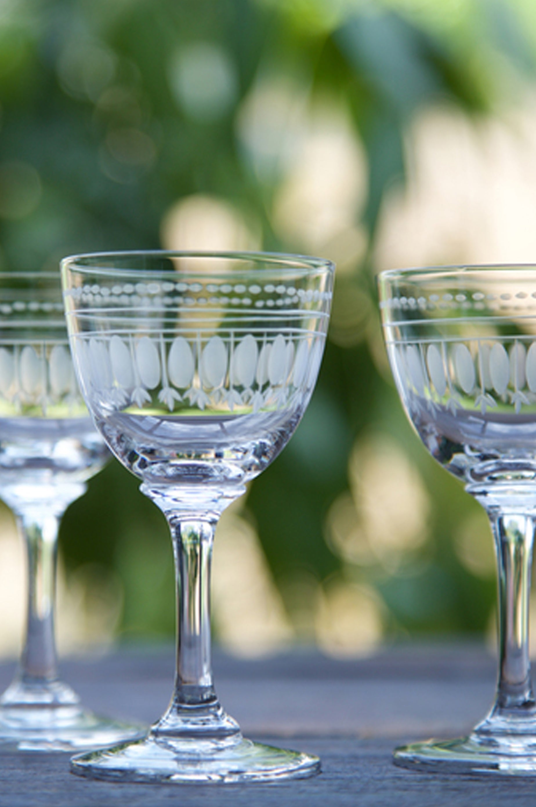 Each glass has been hand-blown and hand-engraved and the liqueur glasses