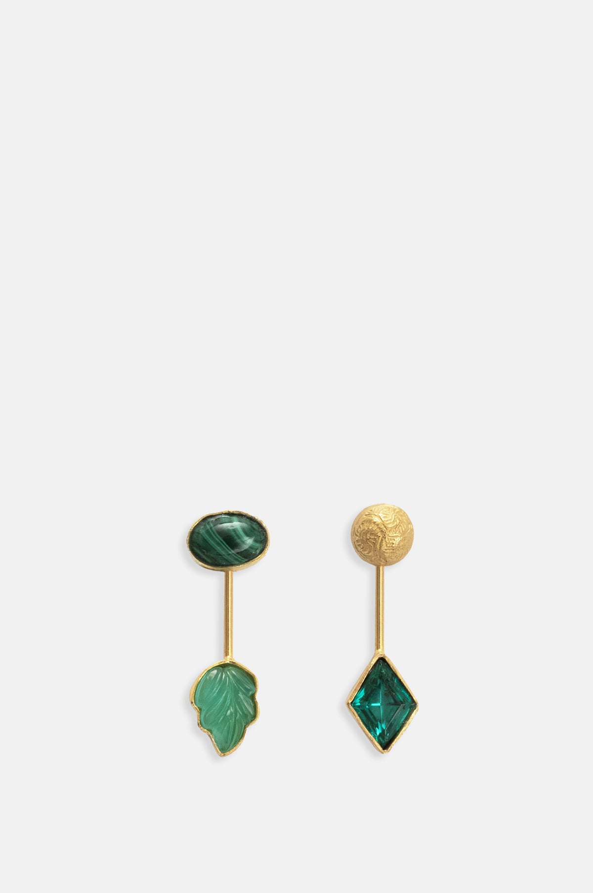 This piece is from their detachable drop collection - these delightful earrings can be worn as shown or as simple mismatched studs. Malachite brings protection and wellbeing.