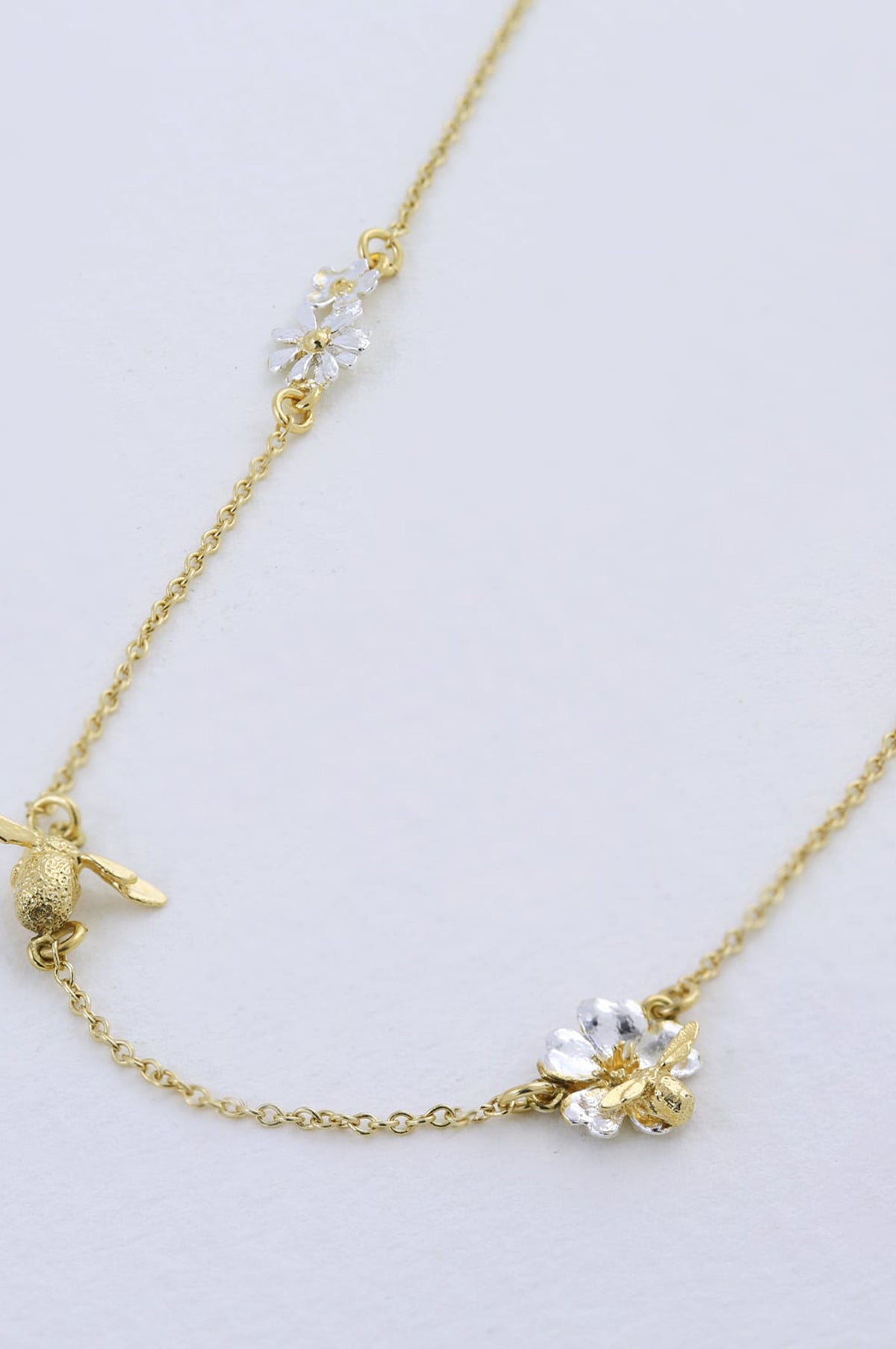 Floral Chain Necklace with Teeny Tiny Bee Gold and Silver