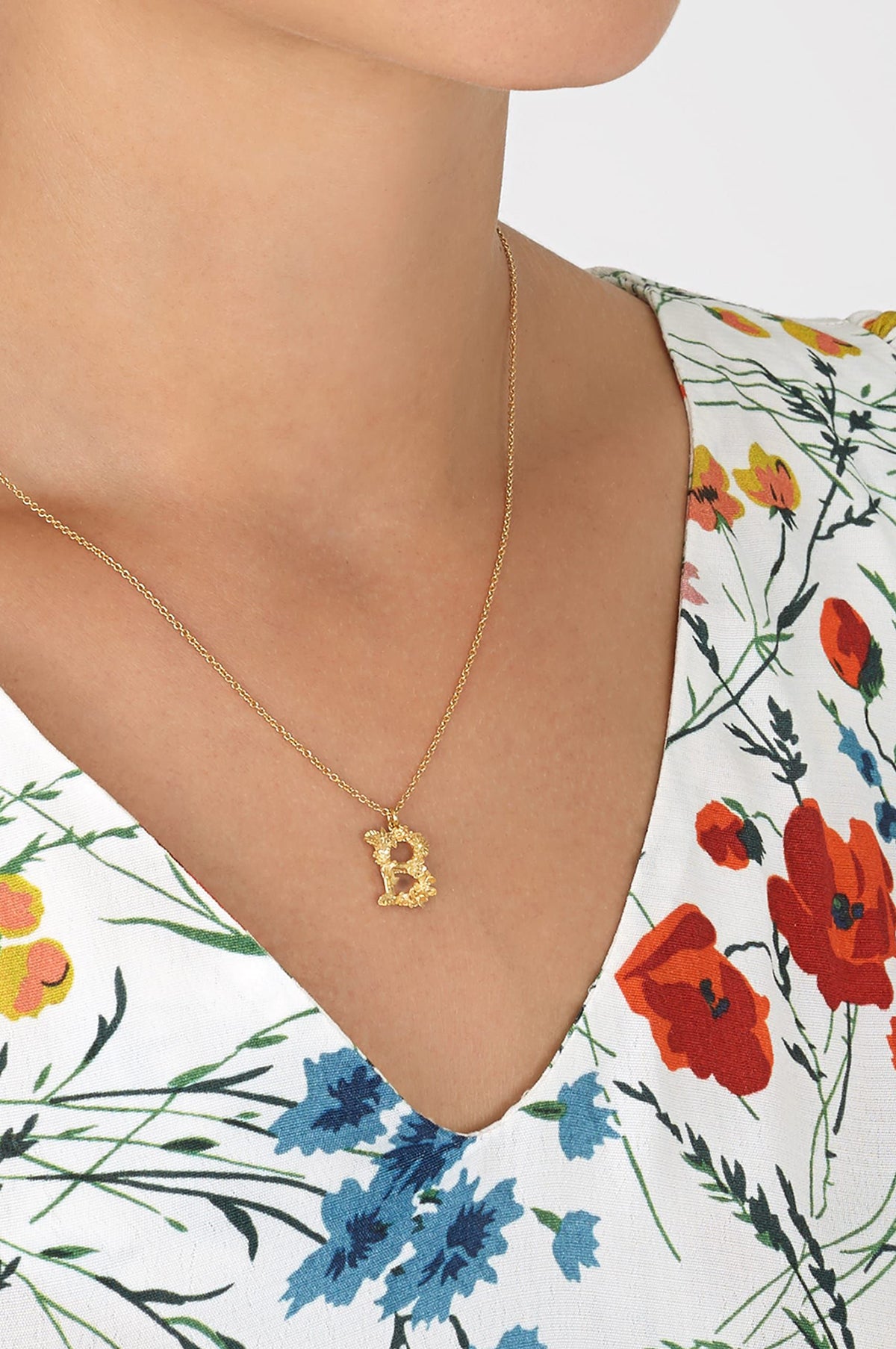 Floral letter 'B' necklace blooming with tangled florals, sculpted leaves and intricate petals from Alex's New Collection 'The Floral Alphabet'.
