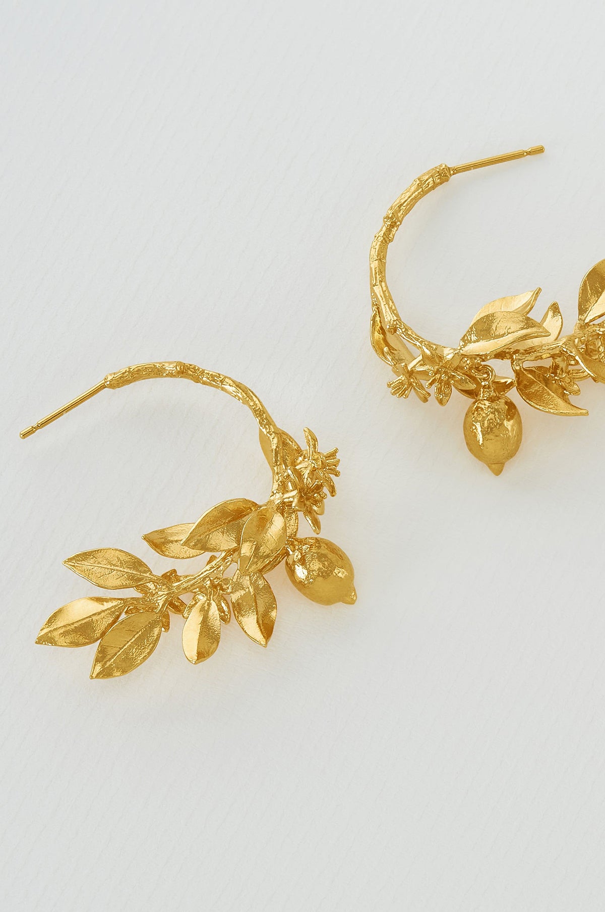 La Dolce Vita is a fun and fruity collection from Alex Monroe which will evoke memories of a favourite holiday (sigh) or daydreams of a never-ending summer (yes please). These ripe looking lemons move (literally!) breezily beneath sculpted hoops of blossoms and leaves for a glamourous Italian look.