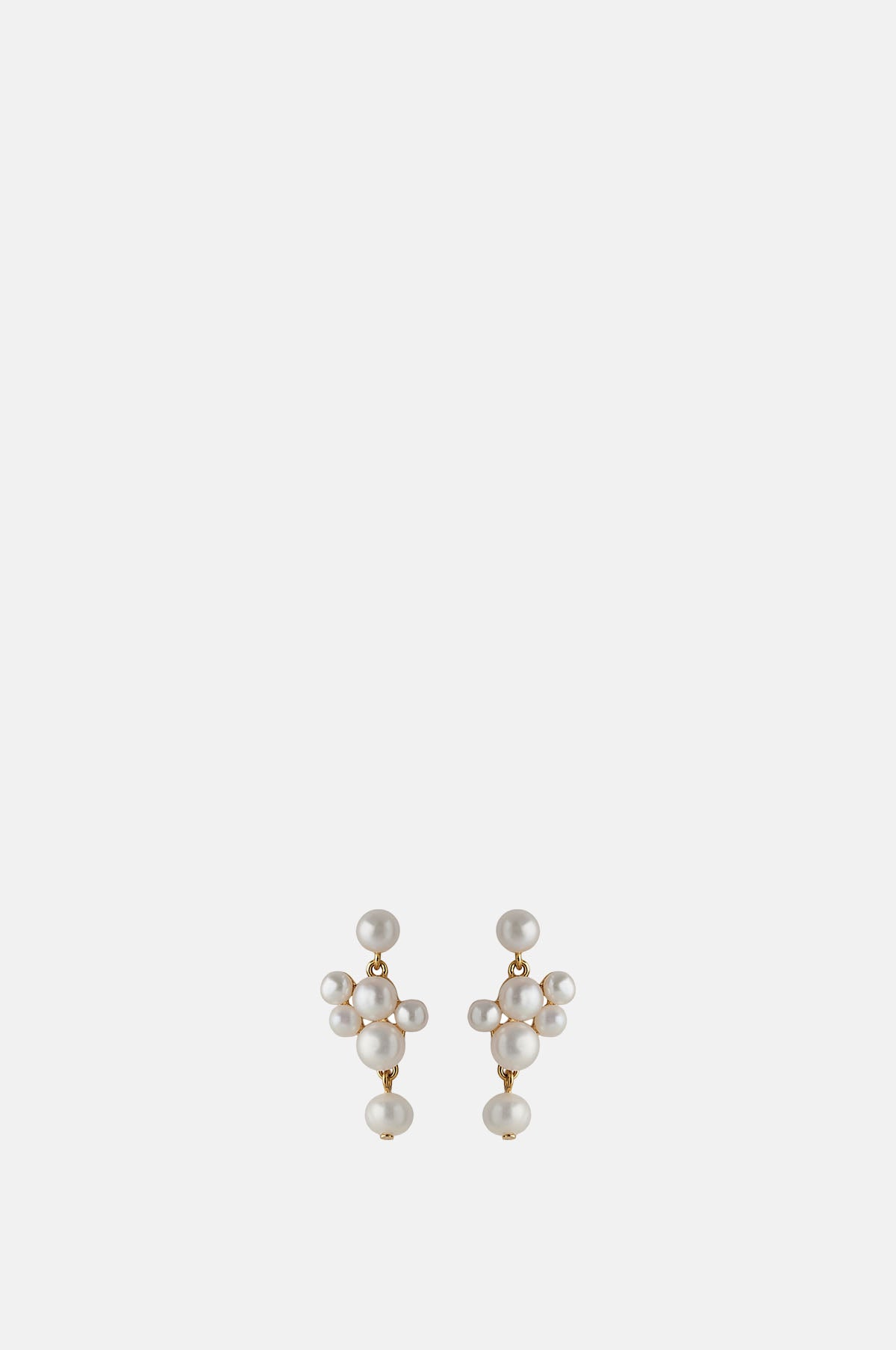 The beautiful Treasure Earrings have five white pearls in different sizes, which creates an elegant and organic expression - inspired by the enchanting world under the sea. They are hung from a pearl stud and have a hanging pearl at the bottom which gives gentle movement.