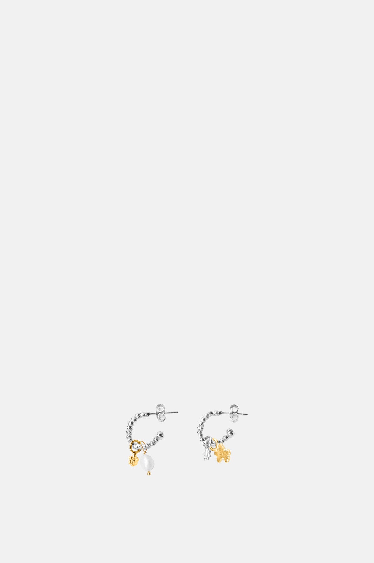 We adore these delicate mixed metal earrings from Christina Junquero. A tiny silver hoop with mixed metal charms it looks beautiful on the ear and is a great everyday piece.