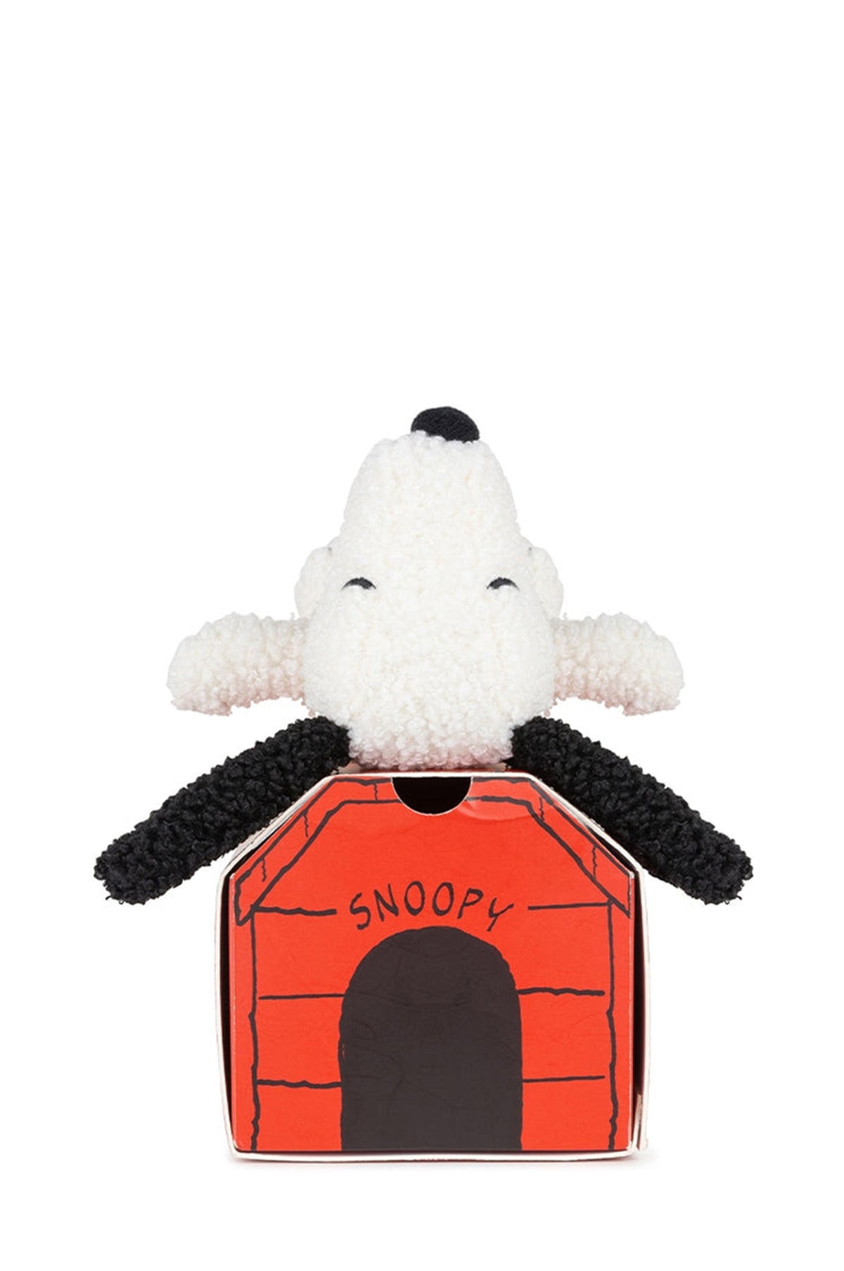 - Tiny snoopy plush toy with cardboard dog house