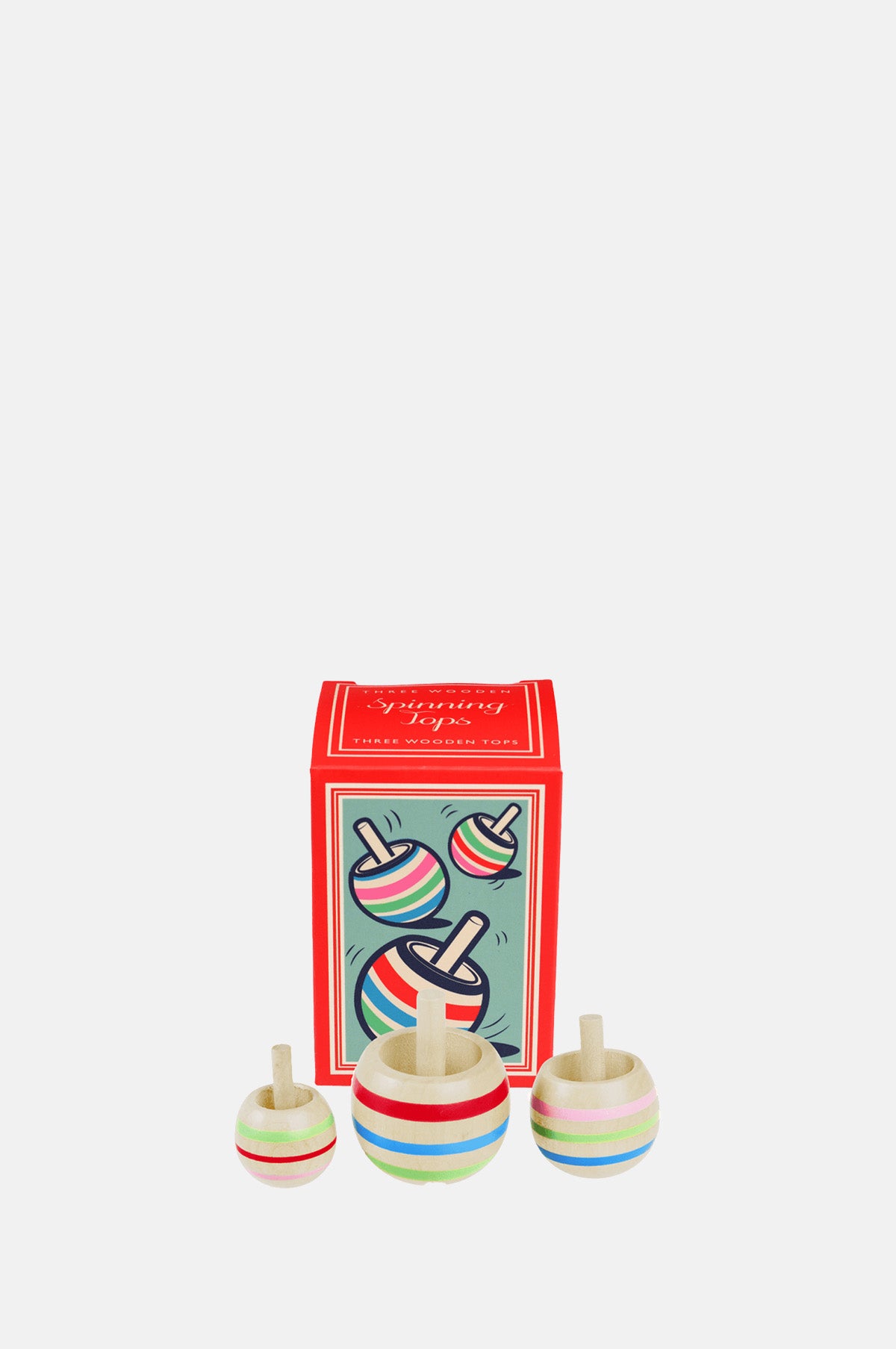 Ready, set, spin! Enjoy a traditional pastime with this set of mini wooden spinning tops. This set includes three wooden spinning tops in different sizes, each featuring colourful painted stripes.