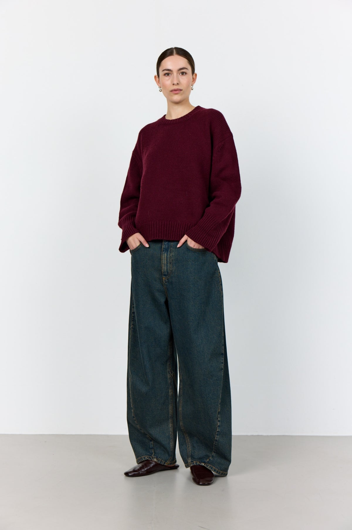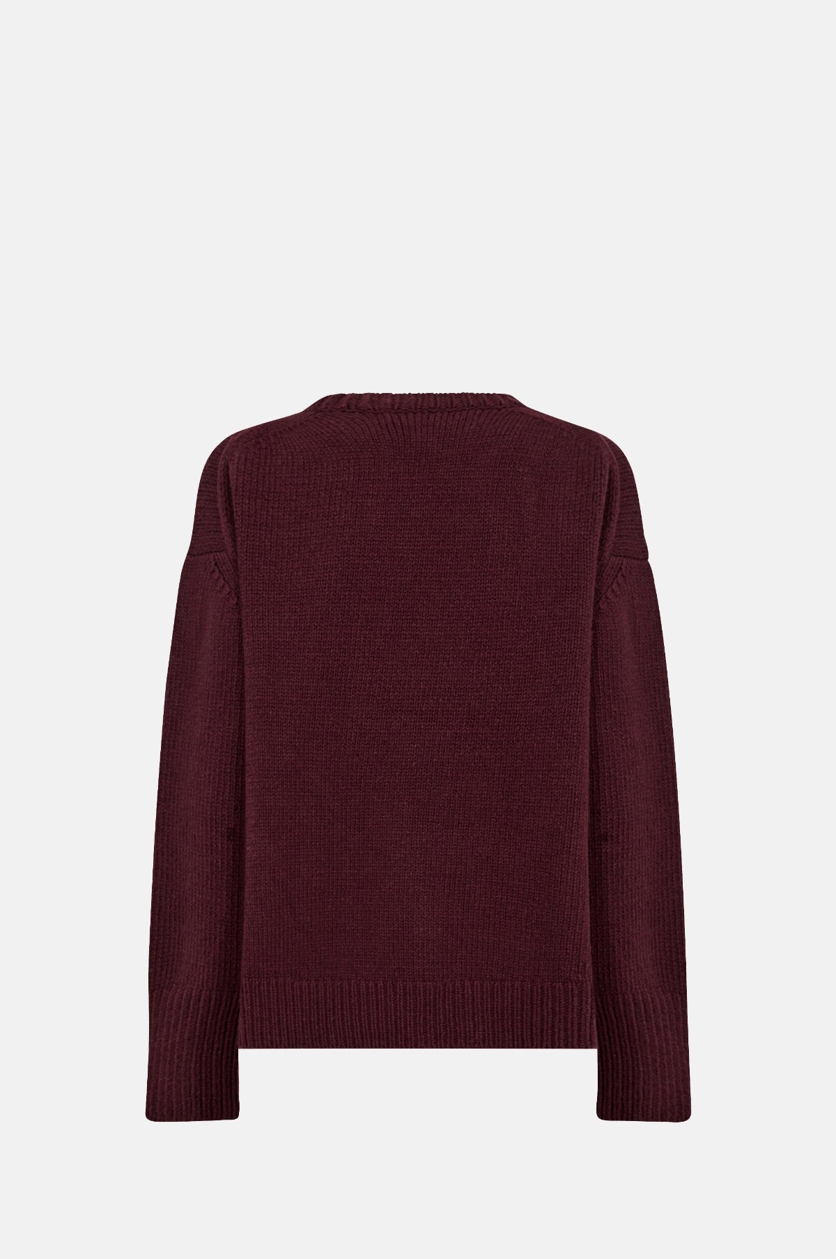 An indispensable staple in our wardrobes - the Perle pullover is a favourite companion for autumn/winter. Crafted from a thick merino wool and cashmere blend in a maroon colour, this jumper will bring collegiate charm to any look. Cut for an oversized fit and featuring a ribbed collar, cuffs and hem with dropped shoulders.
