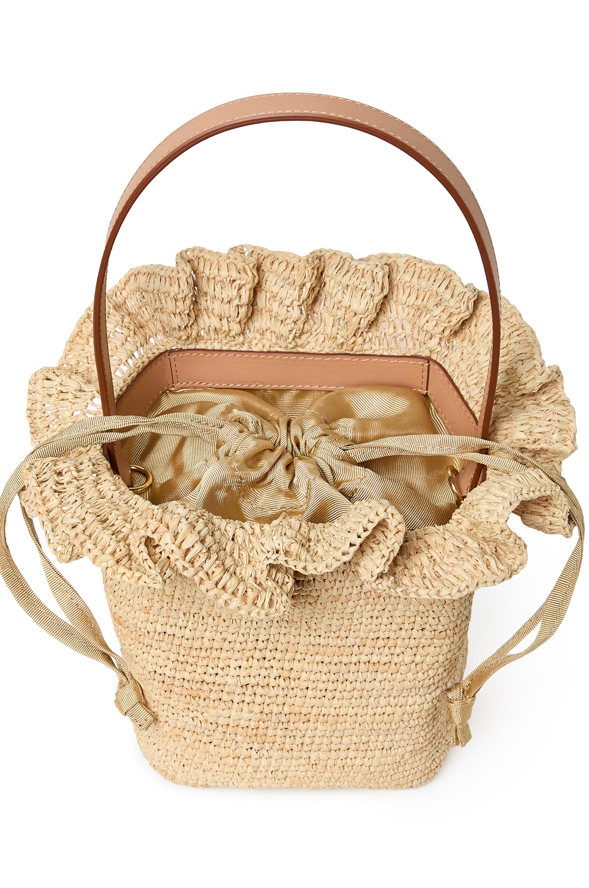 There's nothing quite like a beautifully crafted raffia bag to get us in the holiday spirit. Crafted from a durable raffia that is shaped to a bucket silhouette with a pretty ruffle trim that adorns the top. Roomy enough to stash your everyday essentials, it features a short handle, adjustable crossbody strap and silky grosgrain lining that overspills to create a drawstring closure. It's as practical as it is pretty and will compliment a multitude of summer looks.
