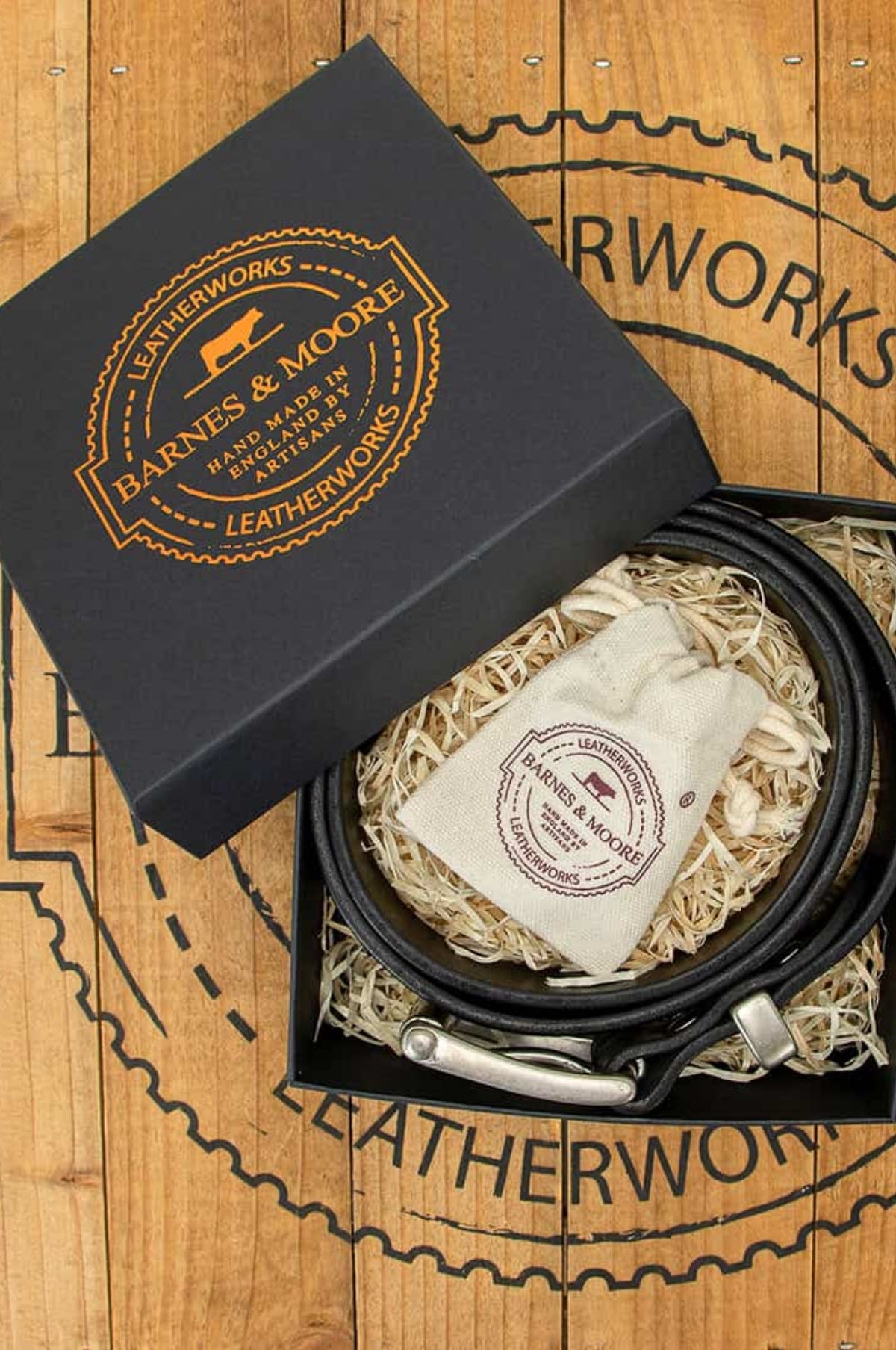 Barnes & Moore offer premium quality made in England leather goods. The Garrison Belt in black Harness Leather is a traditional design with a quality hand cast buckle, 38mm wide to fit the belt loops of most denim or chinos.