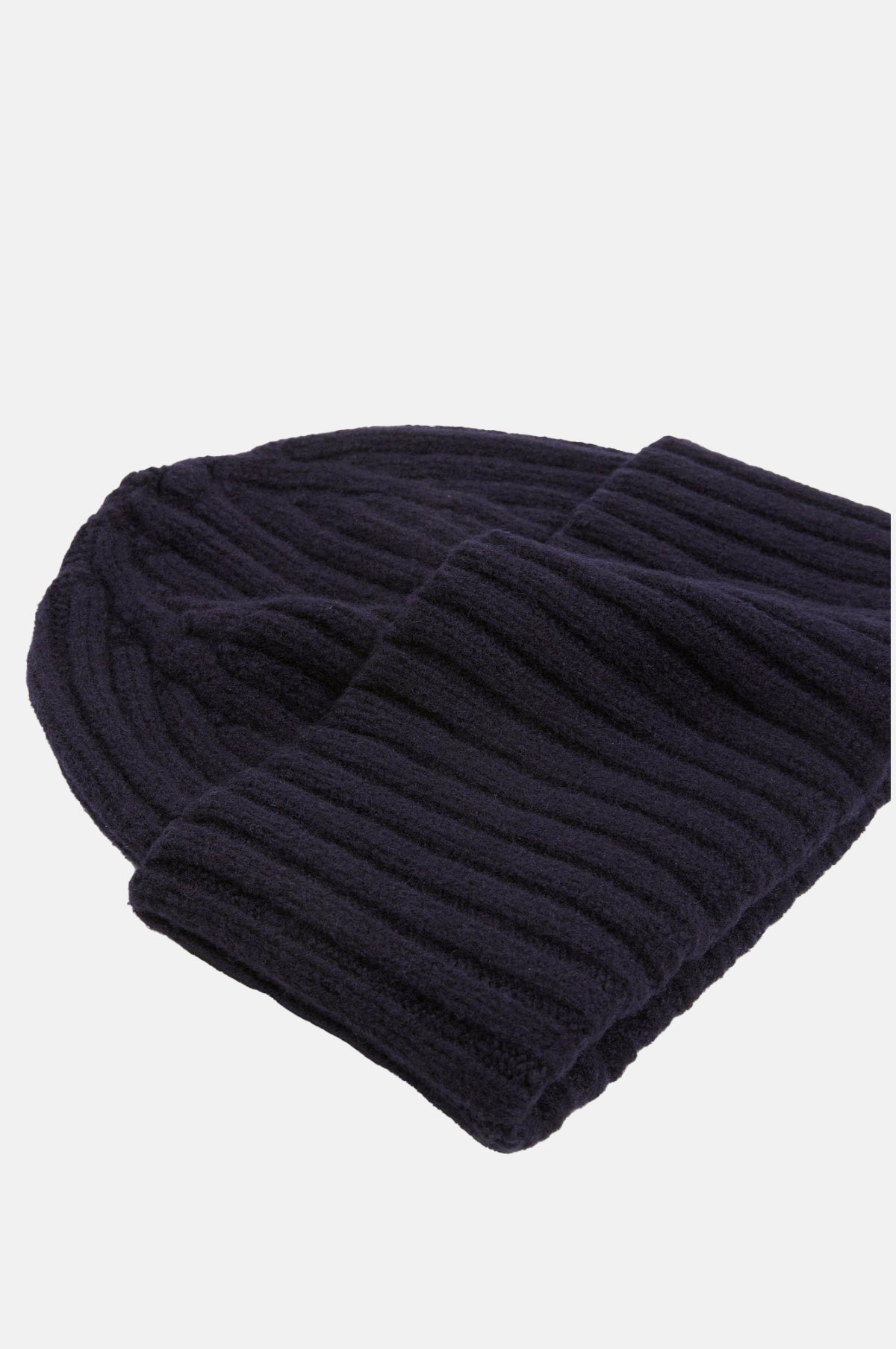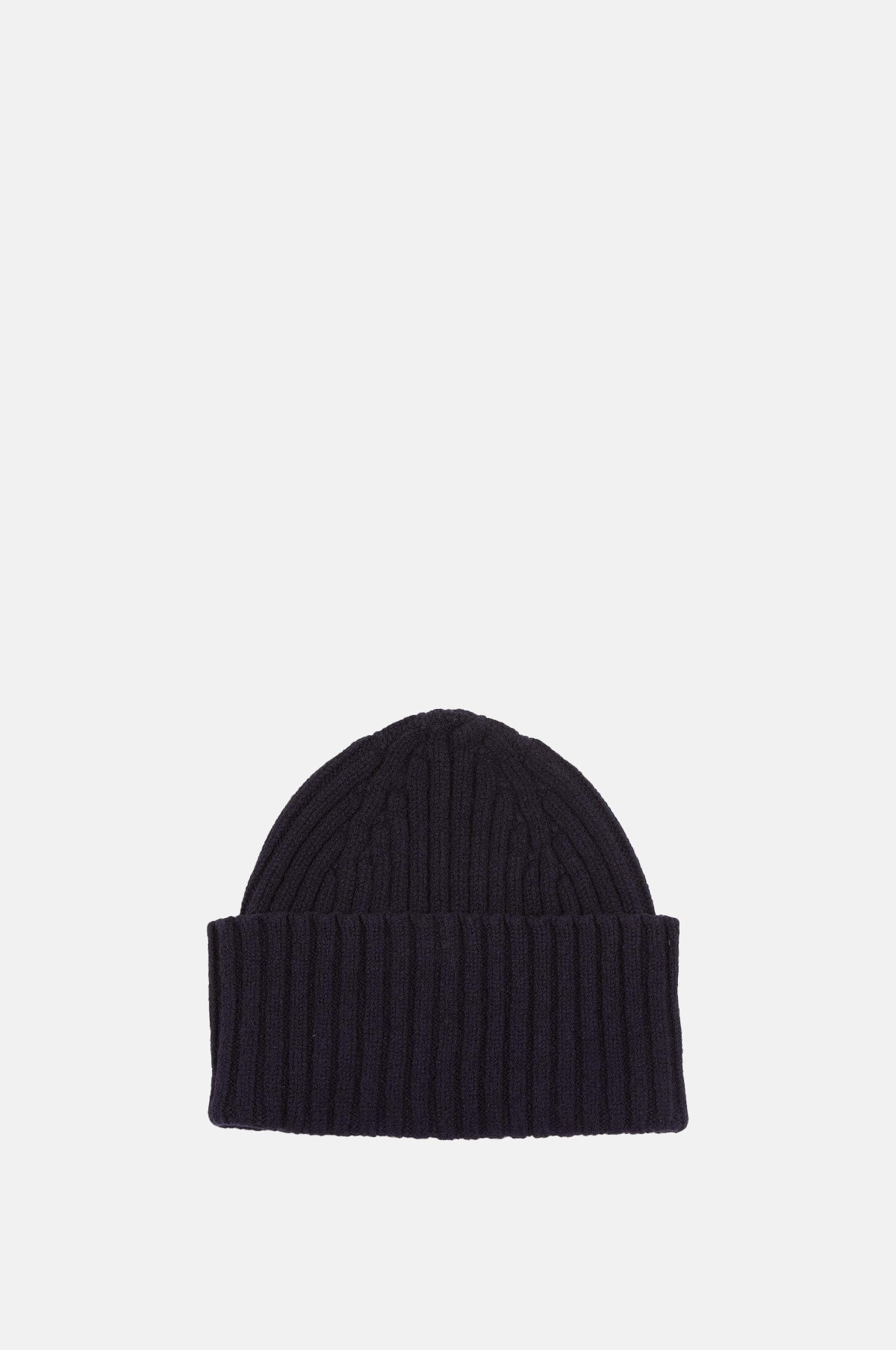 Lambswool Ribbed Knit Beanie Navy