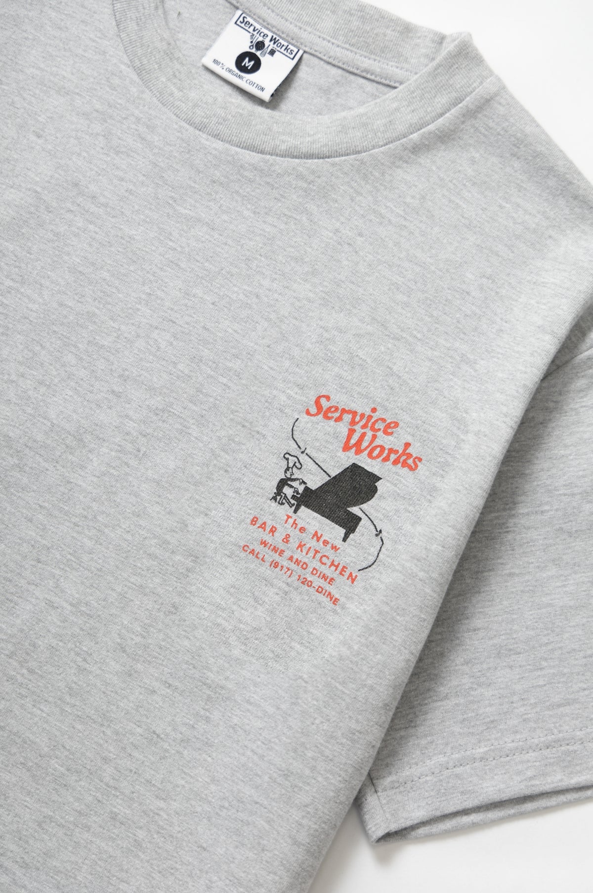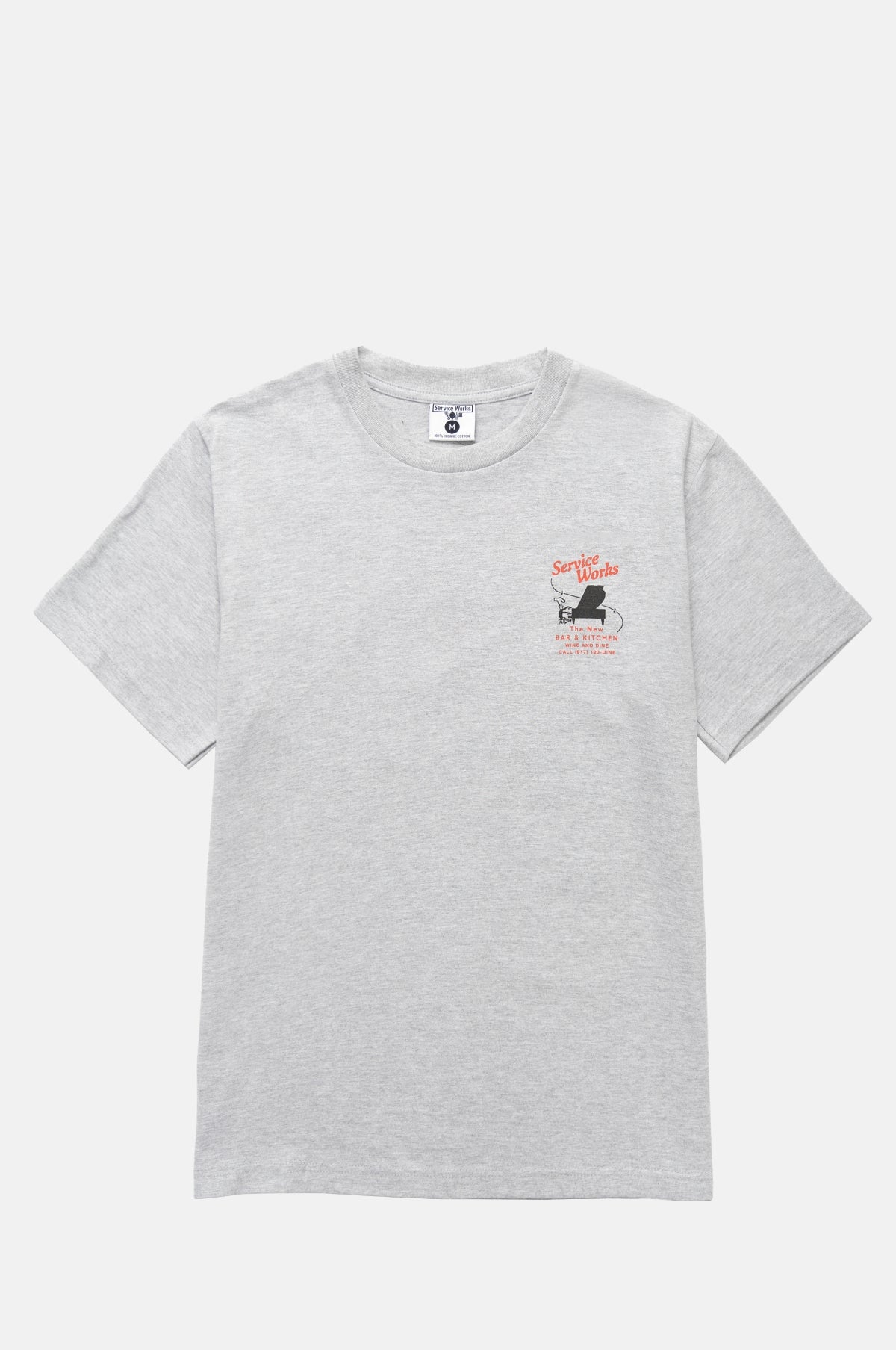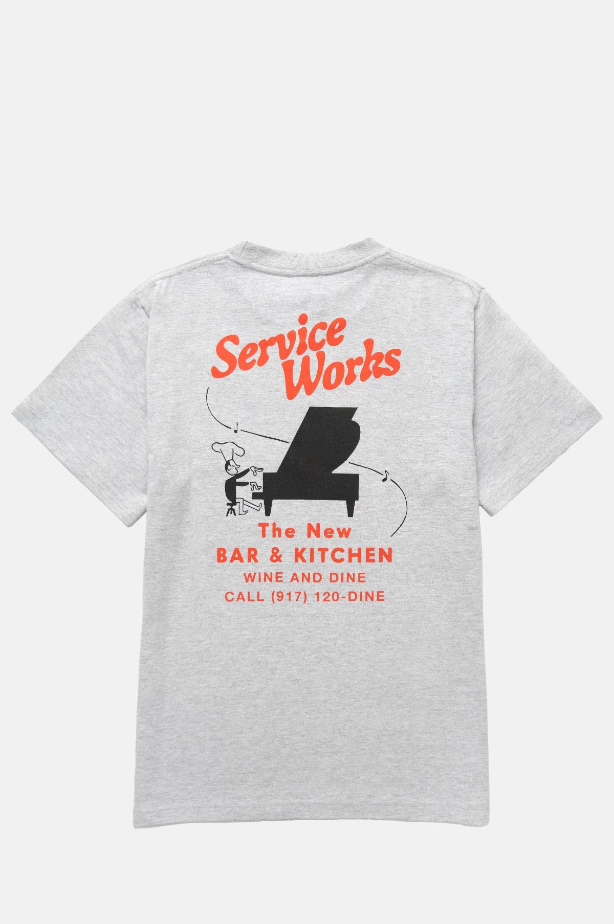 Designed for Chefs, adapted for all - Service Works offer functional clothing that originally started as uniforms for restaurants in London but now serves as the ideal everyday wear. The Bar+ Kitchen Tee is a classic cotton logo tee with a small chest print and larger back graphic. Available in two colorways: this one is a heather grey.