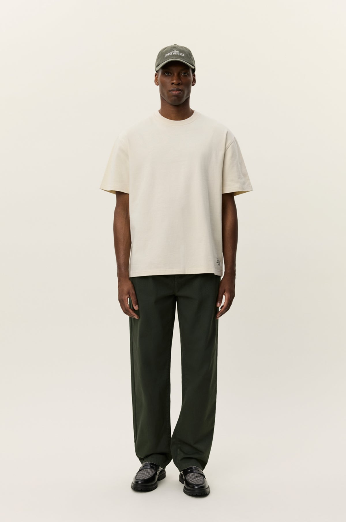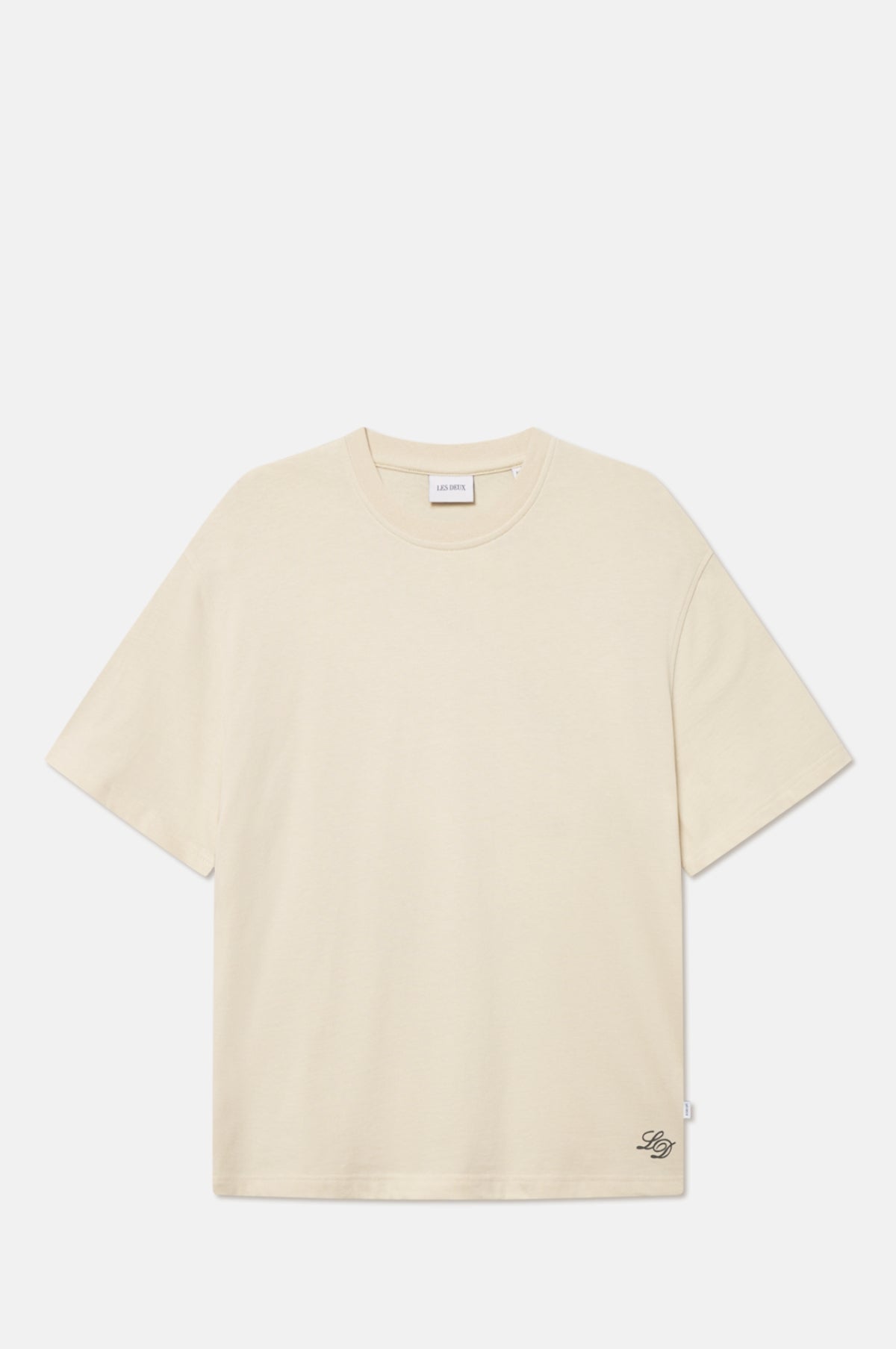 Brand new for AW25 Les Deux are a Copenhagen based brand that bridge the gap between streetwear and classic menswear with a minimal aesthetic and reasonable price point. The Danton T-Shirt in Ivory is a classic short sleeve tee with a large back print and smaller hem print. Crafted from 100% organic cotton.