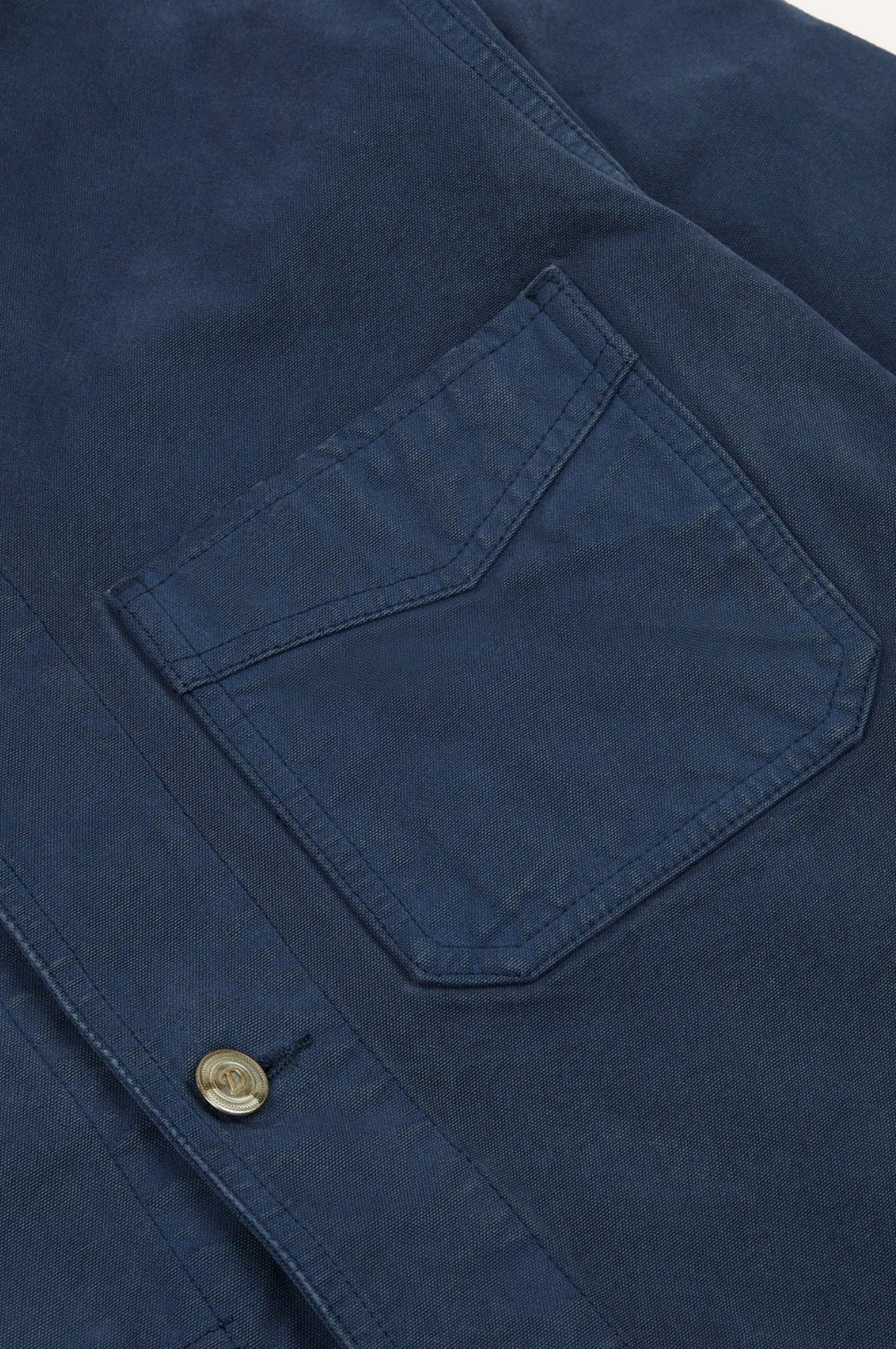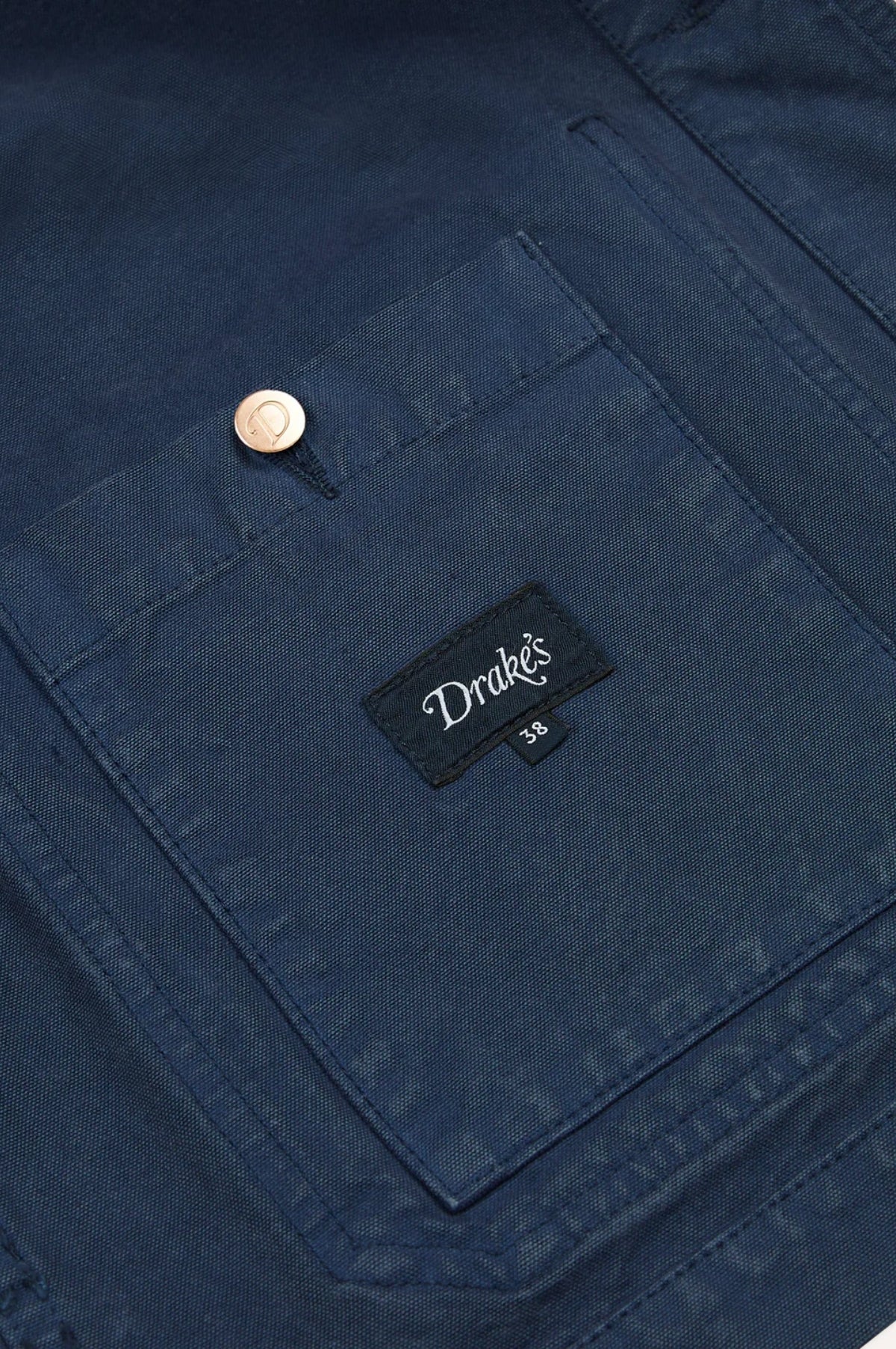This version is made from a heavy cotton duck canvas, with three outer pockets (plus a signature Drake's ticket pocket peaking out on the left-hand side), and one inner pocket. It is cut generously, with a slightly boxy shape recalling the original workwear garments worn around the turn of the century, as opposed to their slimmed-down, contemporary counterparts.