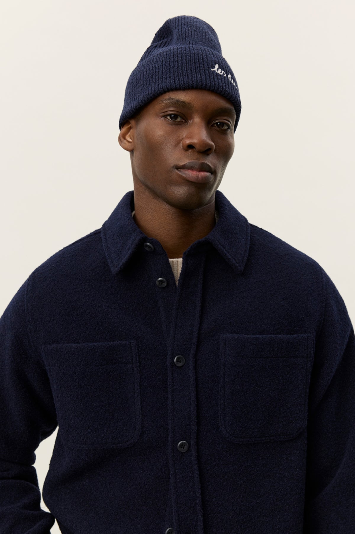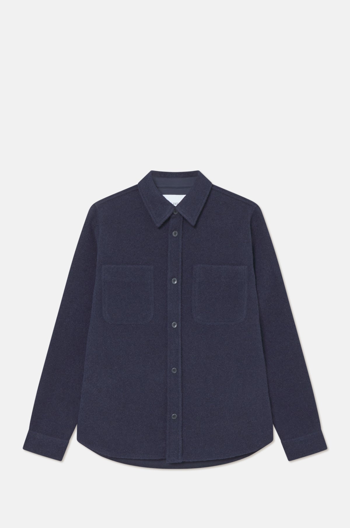 Brand new for AW25 Les Deux are a Copenhagen based brand that bridge the gap between streetwear and classic menswear with a minimal aesthetic and reasonable price point. The Lennon Boucle Overshirt in Dark Navy is a heavy weight overshirt with a slightly boxy shape and 2 chest pockets. Finished with tonal buttons and a curved hem.