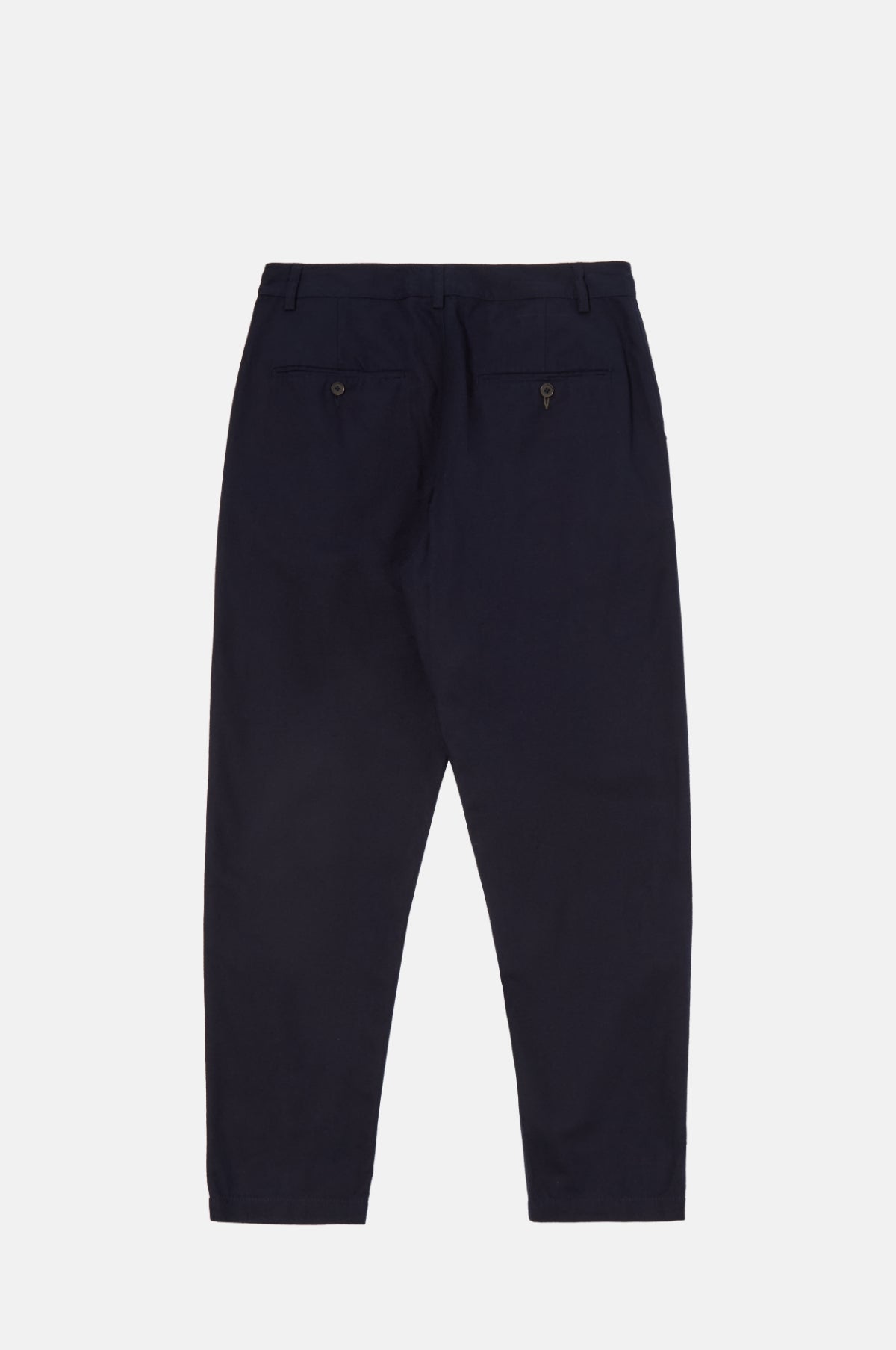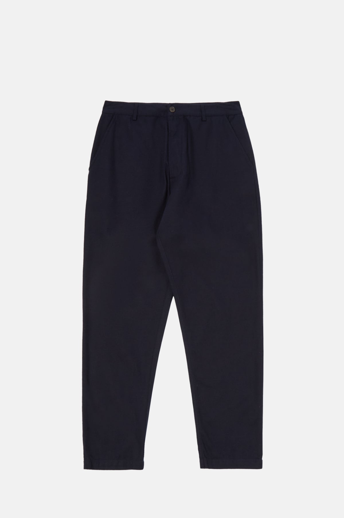The Military Chino from Universal Works are a modern staple with a comfortable, loose tapered shape that's great for all occasions. This season's offering are cut from a densely woven 100% cotton brushed navy moleskin, for a flannel-y feel that combines the best of softness and durability. Mimicking the tactile quality of suede.