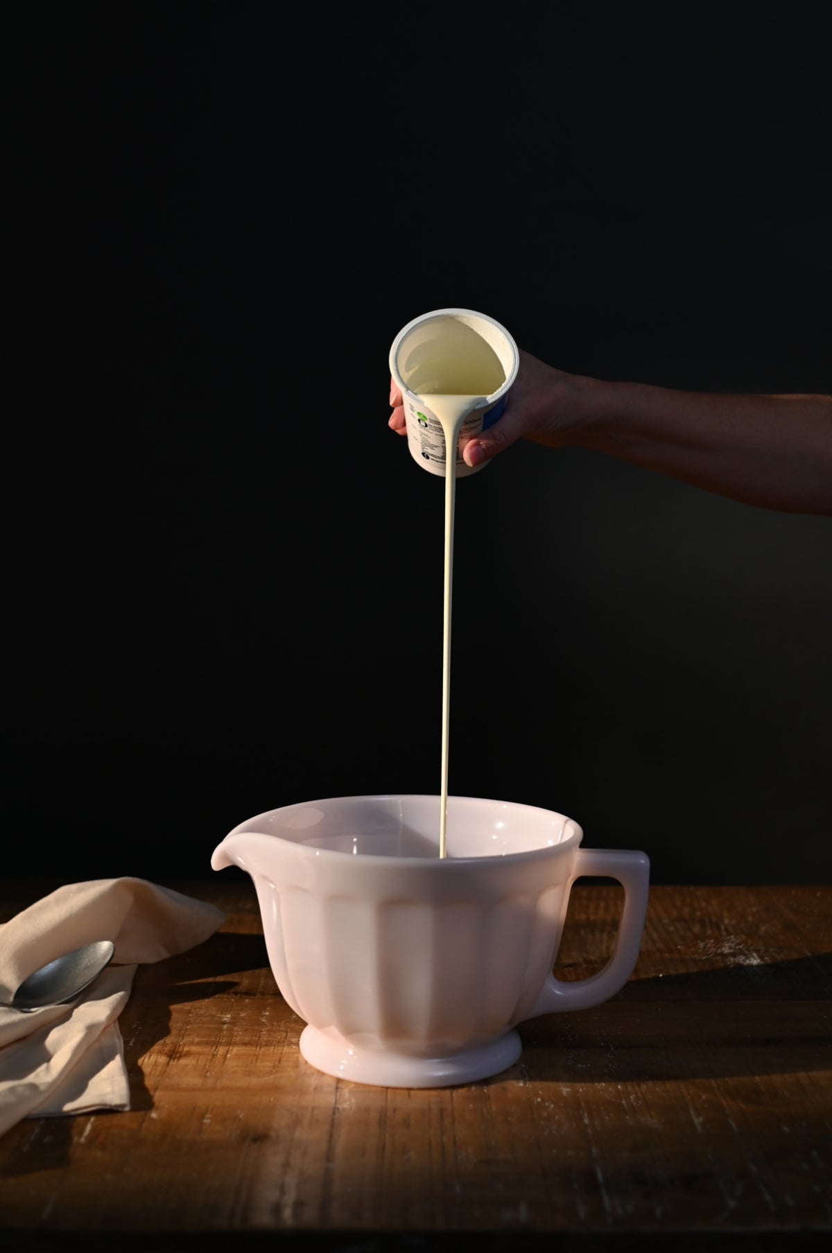 This is where the magic begins. A beautiful batter bowl makes for a beautiful cake/pudding/biscuits (delete as appropriate). In a vintage style and made from exquisite milk glass, what a lovely addition this will be to your kitchen accessories.
