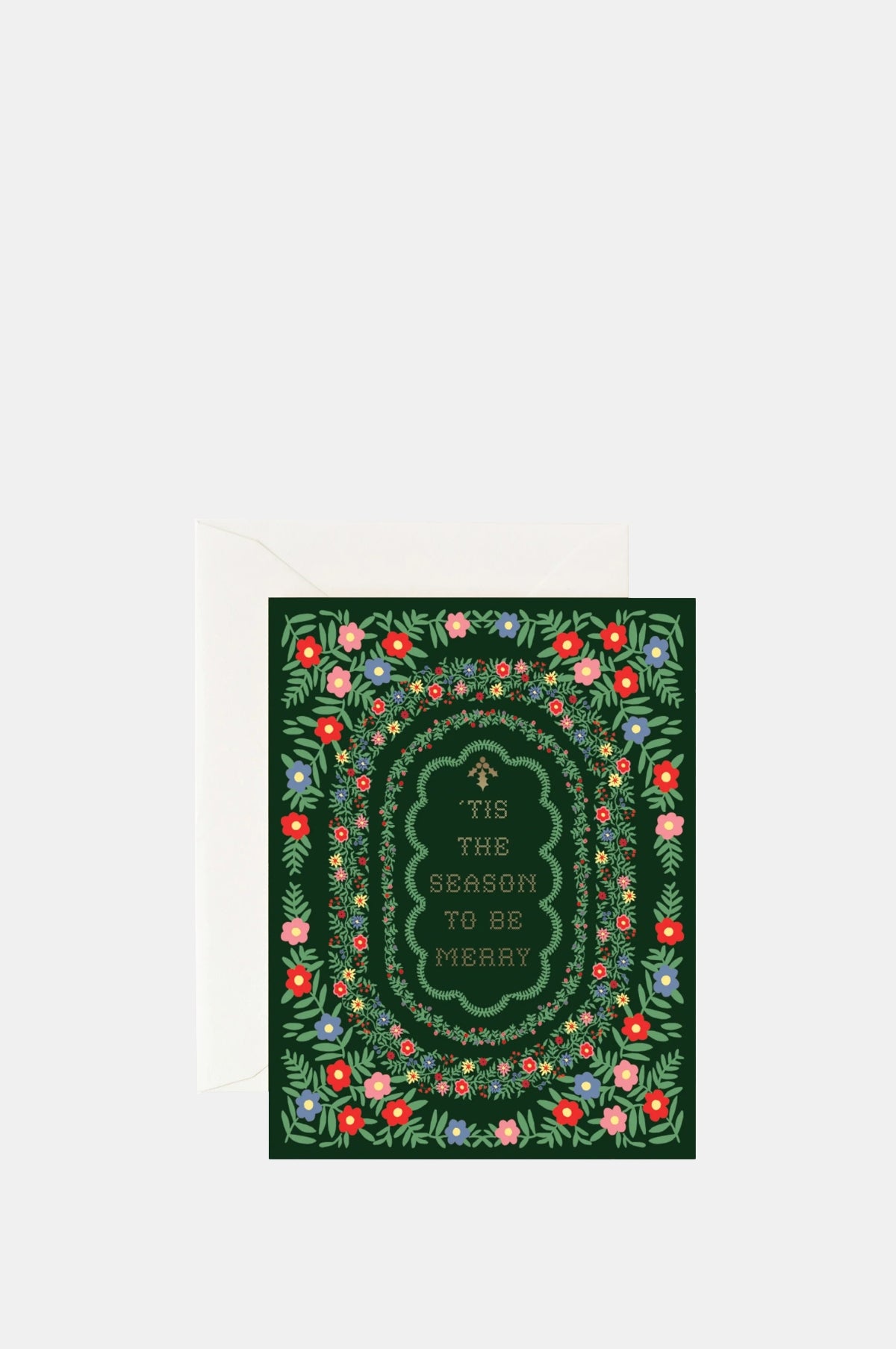 It's as if you went to the effort of cross-stitching your own festive message in the middle of this glorious floral Christmas Card. With a gold foil stamped message of "'Tis the season to be merry", who are we to disagree!