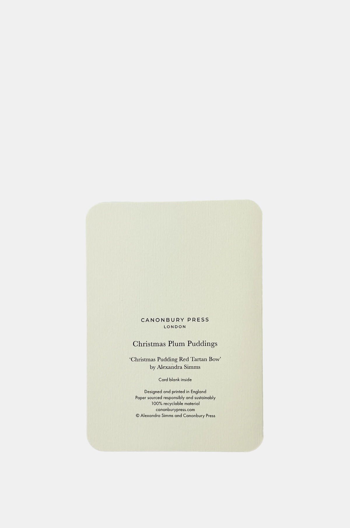 Inspired by decorative Victorian plum puddings, this festive card features a Christmas pudding richly adorned with a big red tartan bow and seasonal greenery. Photographed by Alexandra Simms and printed in England, this is a nostalgic and joyful choice for seasonal greetings or to accompany a thoughtfully wrapped gift.