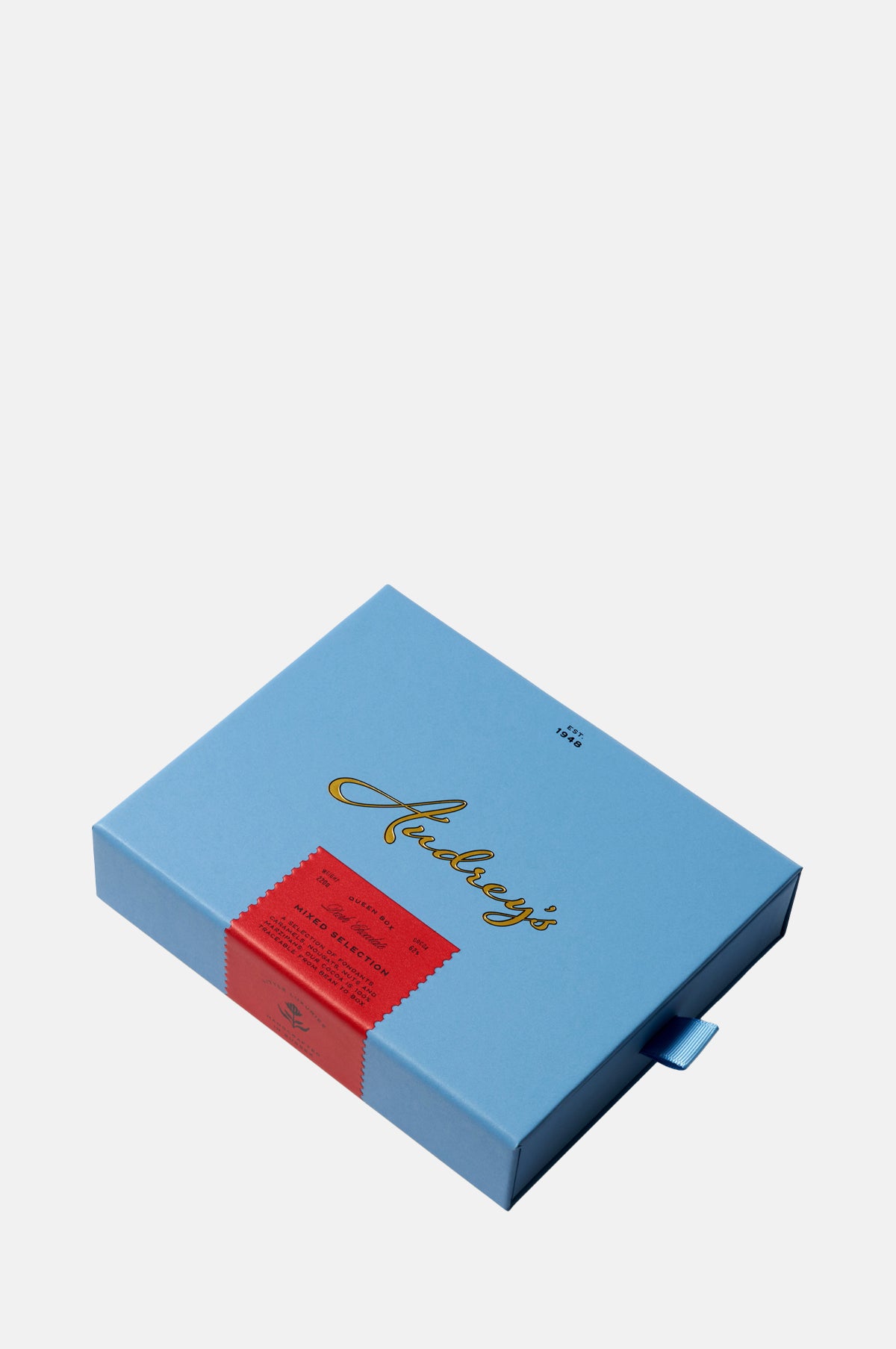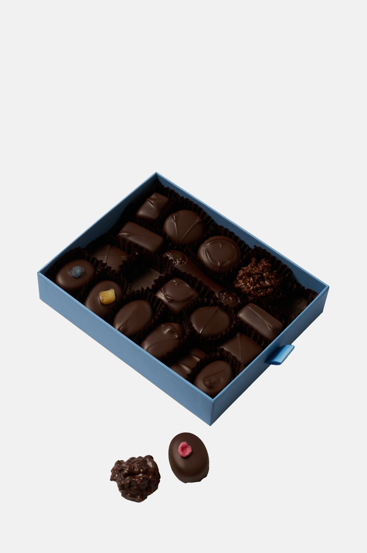 For the grown ups among us who favor dark chocolate, Audrey's presents an elegant collection of their finest dark chocolate creations. This Queen-sized box offers a rich assortment of handcrafted chocolates – from vibrant fondant creams and bold caramels to dark praline, ginger, and nutty pralines – all enrobed in smooth, intense Valrhona 62% dark chocolate. A refined choice for lovers of deep, balanced cocoa and timeless craftsmanship.