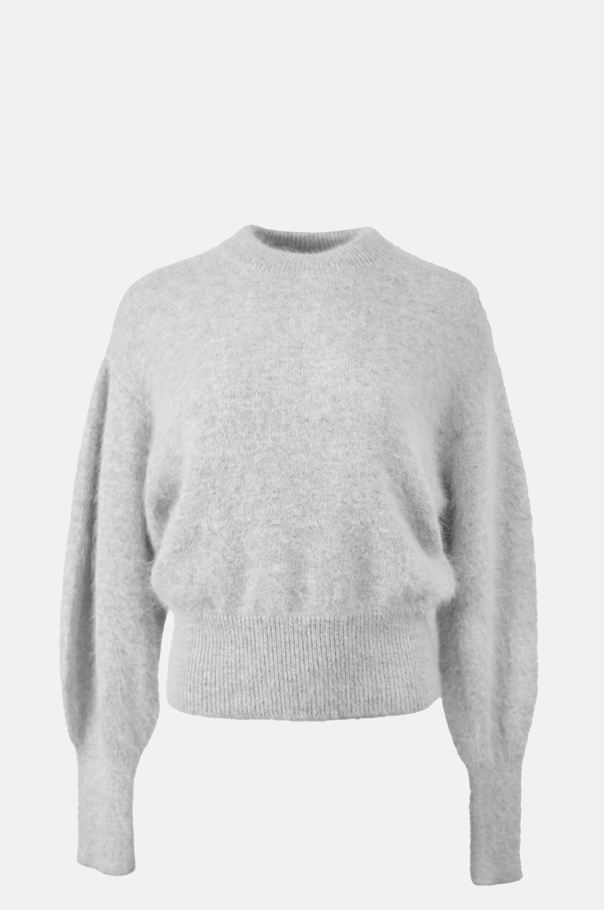 Known for its halo of fluffiness and silky texture, angora is a soft, and luxurious fiber that is lightweight and warm. Crafted from an angora blend, this light grey knit from Bellerose is perfect for transitional weather. Ribbed detailing and gentle cinching at the cuffs and hem add subtle structure with just the right amount of drape.