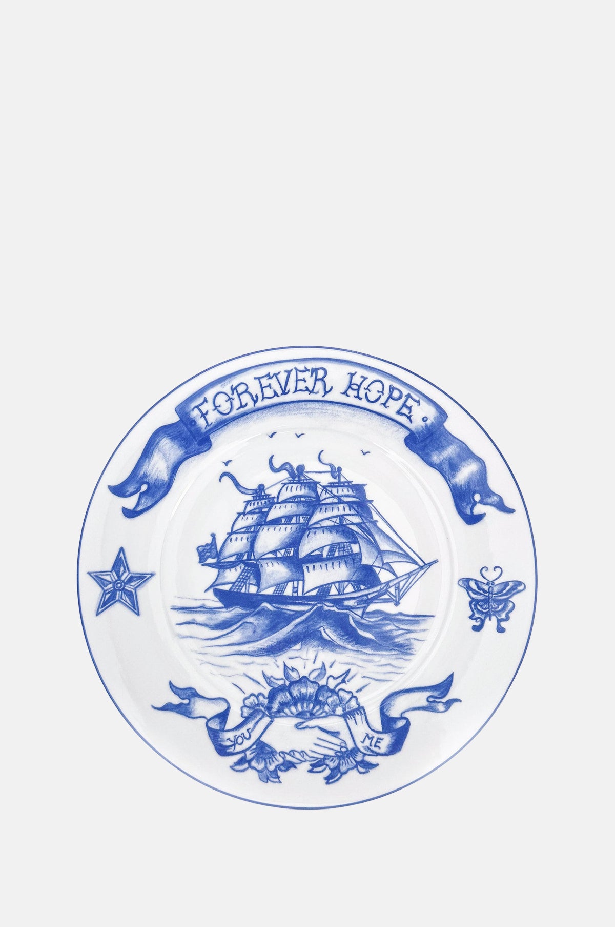 Founded by ceramicist and artist Eva Gernandt, By Mutti stems from her deep love and respect for lives lived on the sea and the tradition of old school tattoos. Consequently, each piece is steeped in history, symbolism, and meaning which is reflected in each collection. The Forever Hope Dinner Plate tells a story of longing, trust, hope and love and all have the signature nautical By Mutti aesthetic. Durable and beautiful, each piece is manufactured with high temperature firings and in-glaze motifs. Designed to last, these gorgeous ceramics have become a true collector's item. Combine pieces from this collection for a beautiful table setting, or give it as a lovely gift!