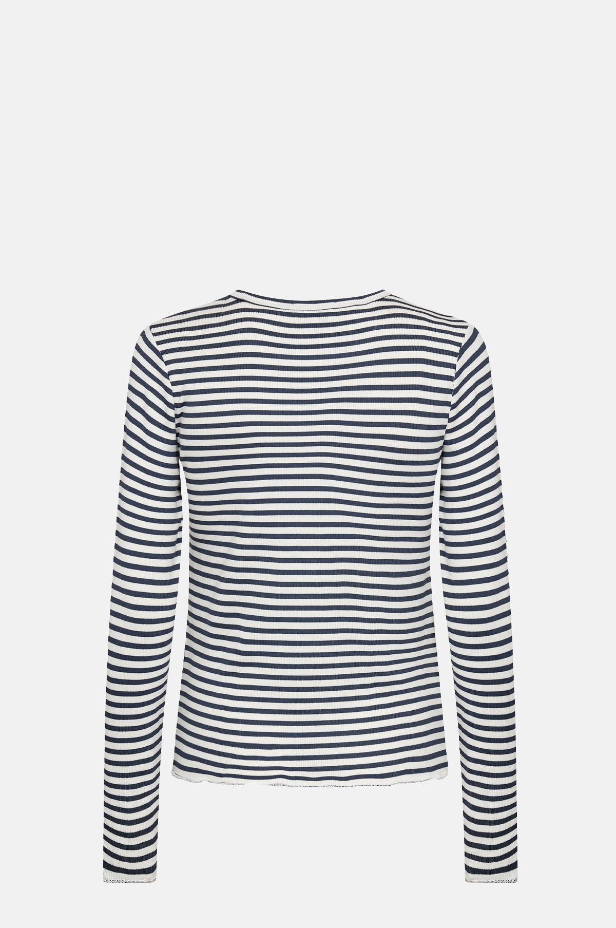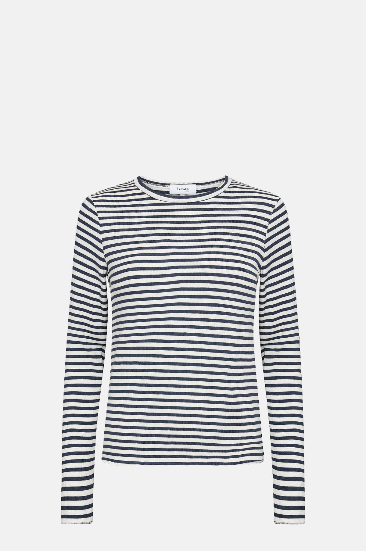 Ika is a navy and white striped long-sleeved tee from Levete Room. Made primarily from Ecovero Viscose is has the perfect amount of stretch and looks lovely layered or on its own. Soft to the touch this feels like a second skin and is wonderfully comfortable on.