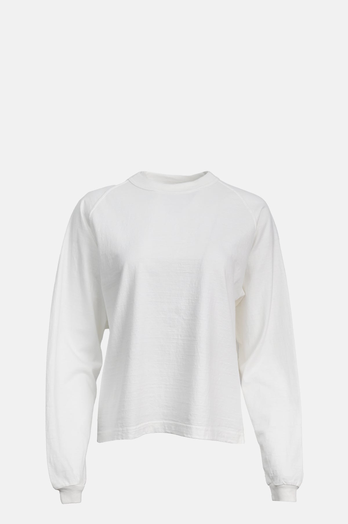 A cut above your standard t-shirting fare, the Mahuna long sleeve t-shirt will be a hardworking staple in your wardrobe. Cut from a heavyweight cotton jersey with raglan sleeves which nods to casual sportswear and provides freedom of movement. Designed with a cropped, boxy silhouette and small side slits at the hem. Produced using special Japanese Ochiwata recycled cotton offering a t-shirt that is wonderfully soft, luxurious and durable. Also available in Emboldened (red) and Hambledon grey.