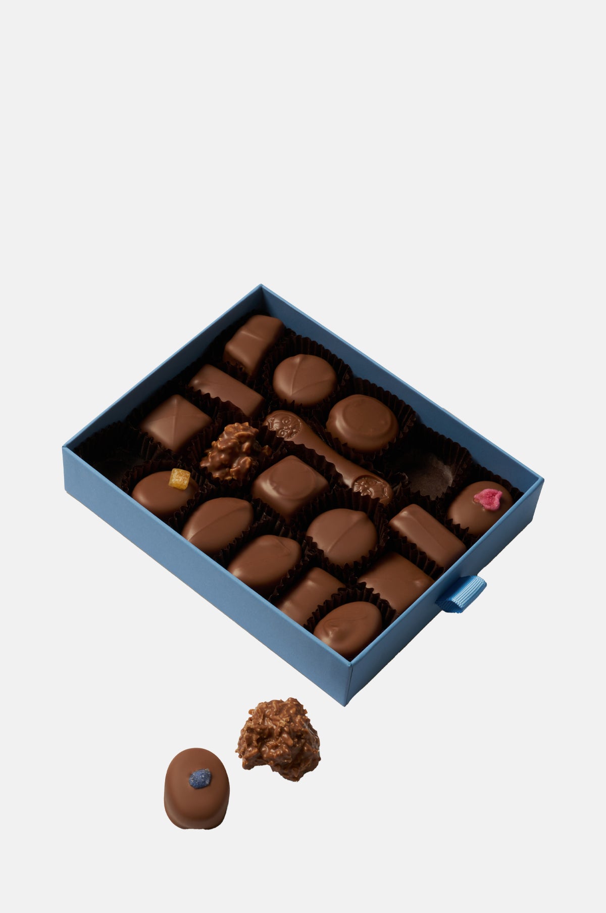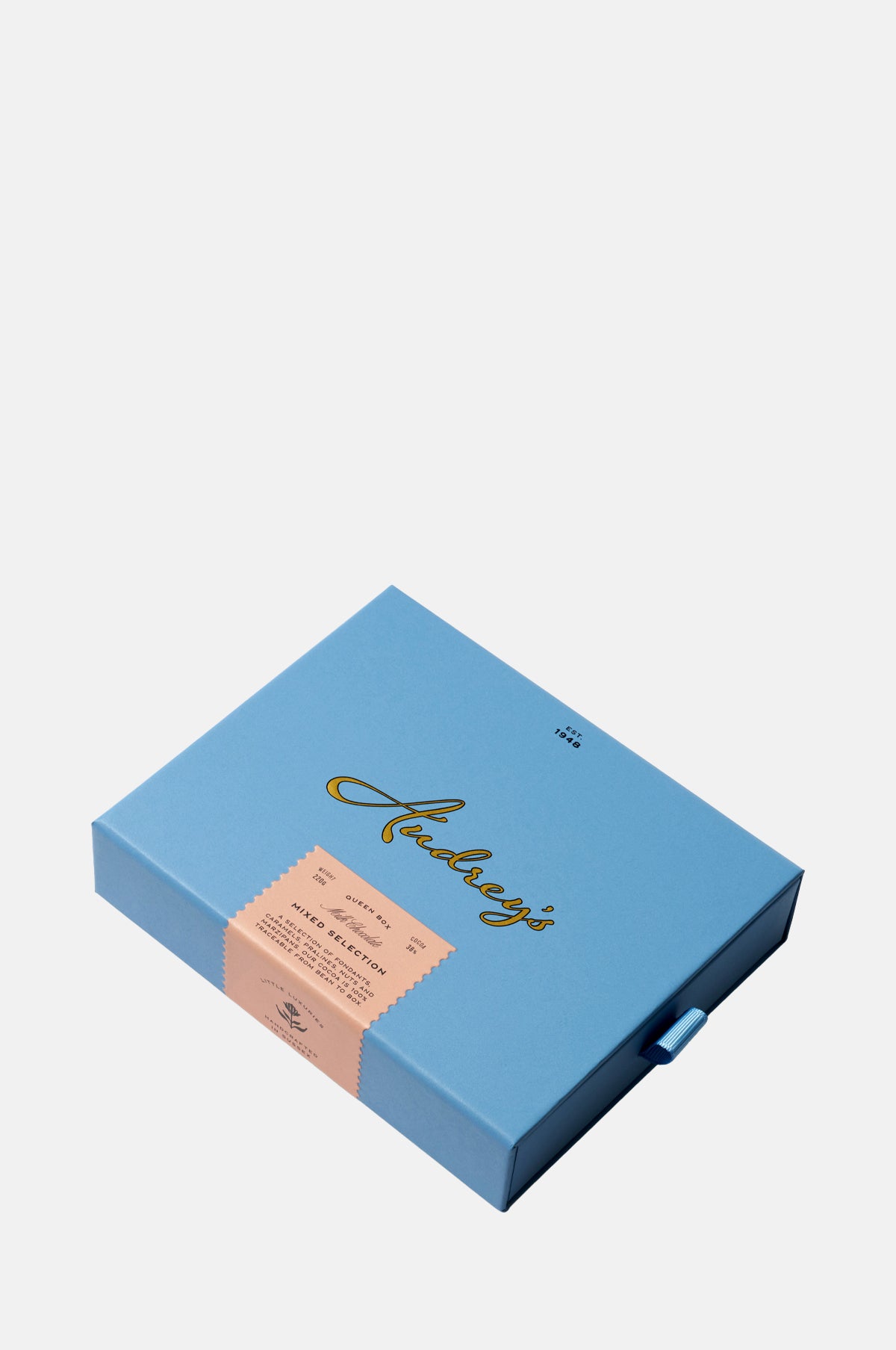 For those who favour milk chocolate (we hear you) Audrey's delivers a beautifully curated box showcasing only milk-chocolate delights from their full range. Each piece is handcrafted in-house, featuring a rich variety of fondant creams, luscious caramels, smooth praline, crunchy nuts, and delicate ginger – all enrobed in creamy Valrhona 38% milk chocolate. This selection celebrates the smooth, comforting sweetness of milk chocolate in every bite, making it a timeless choice for gifting or indulgent moments.