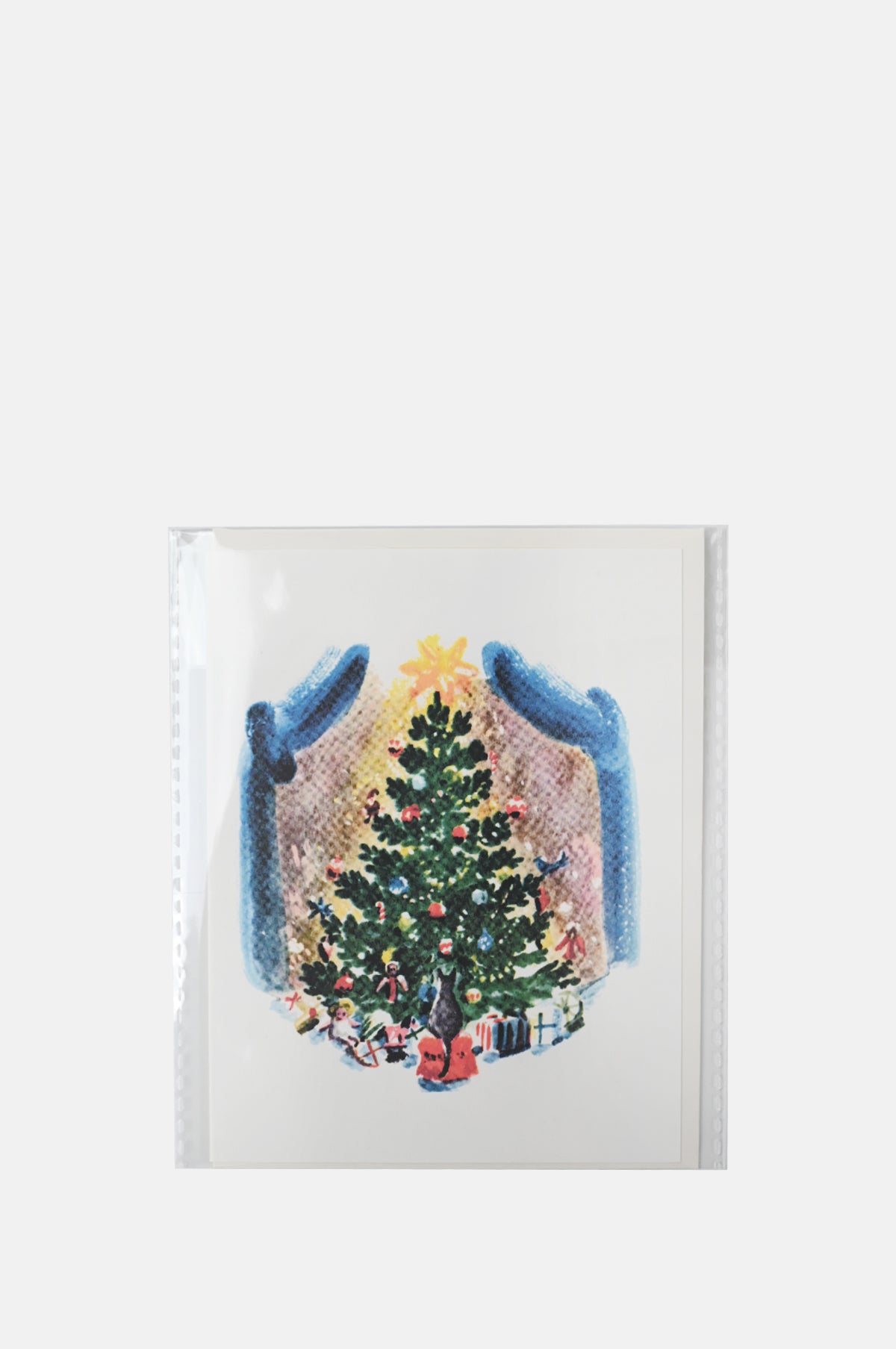 Reimagined from a vintage Children's book this holiday card from Parcel Paper Goods features a retro print of presents around a Christmas tree.