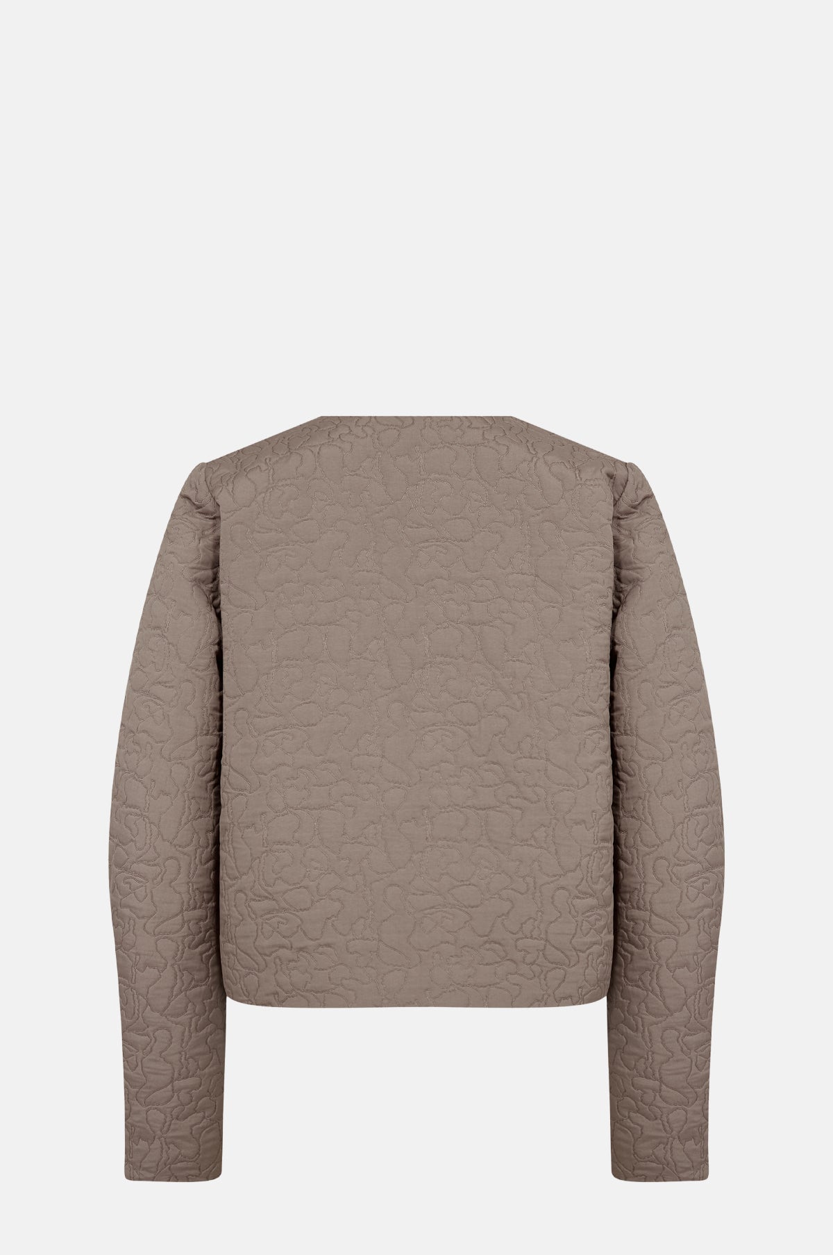 A lovely lightweight jacket for spring, the Pippa Jacket has a clean collarless neckline with a button-down front. It features embroidery all over to create a wonderful pattern that gives the jacket an almost quilted feel and weight. Its mushroom brown colourway will complement almost everything in your wardrobe and its cropped fit makes it perfect for layering.