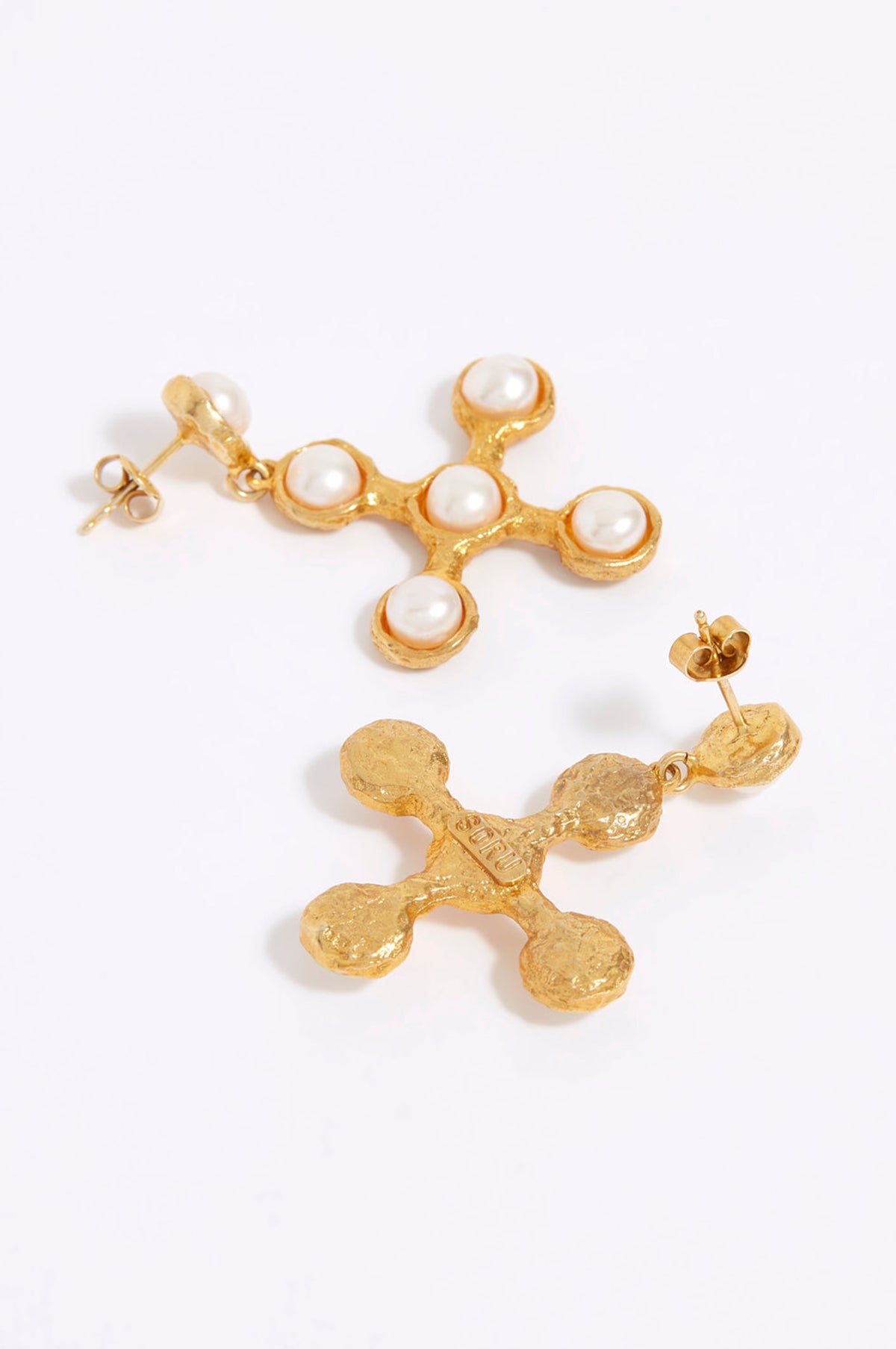 These earrings feature natural gemstones and baroque pearls which may contain internal inclusions, irregular edges, uneven surfaces and variations in the colours. No two gems are the same, adding to the beauty and uniqueness of each individual gem.
