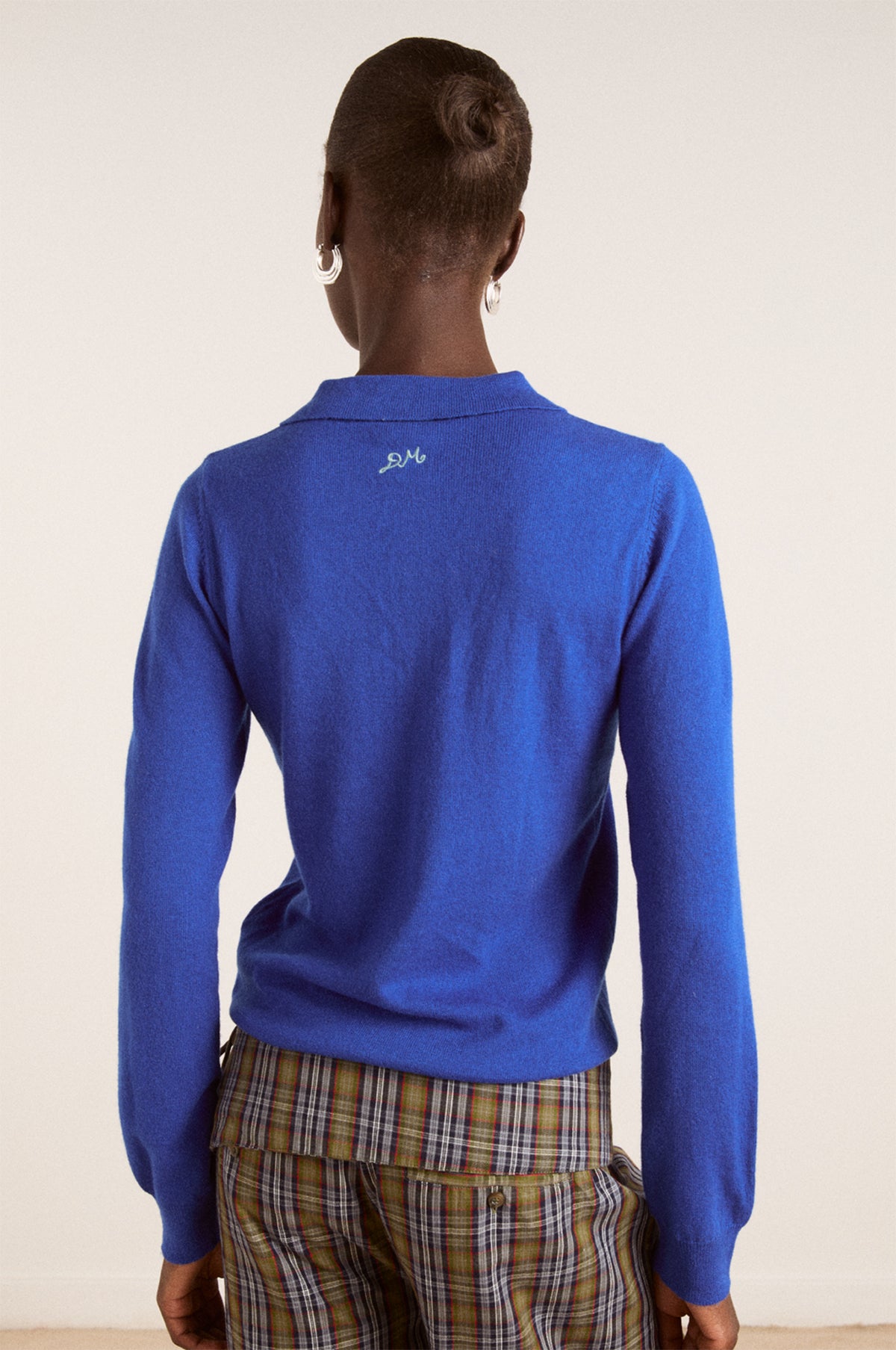 Woven from a luxrious wool-cashmere blend, this vivid cobalt blue knit is ideal for transitional weather. Lightweight yet warm, it features subtle cable detailing down the placket - the perfect layer to carry you through every season.