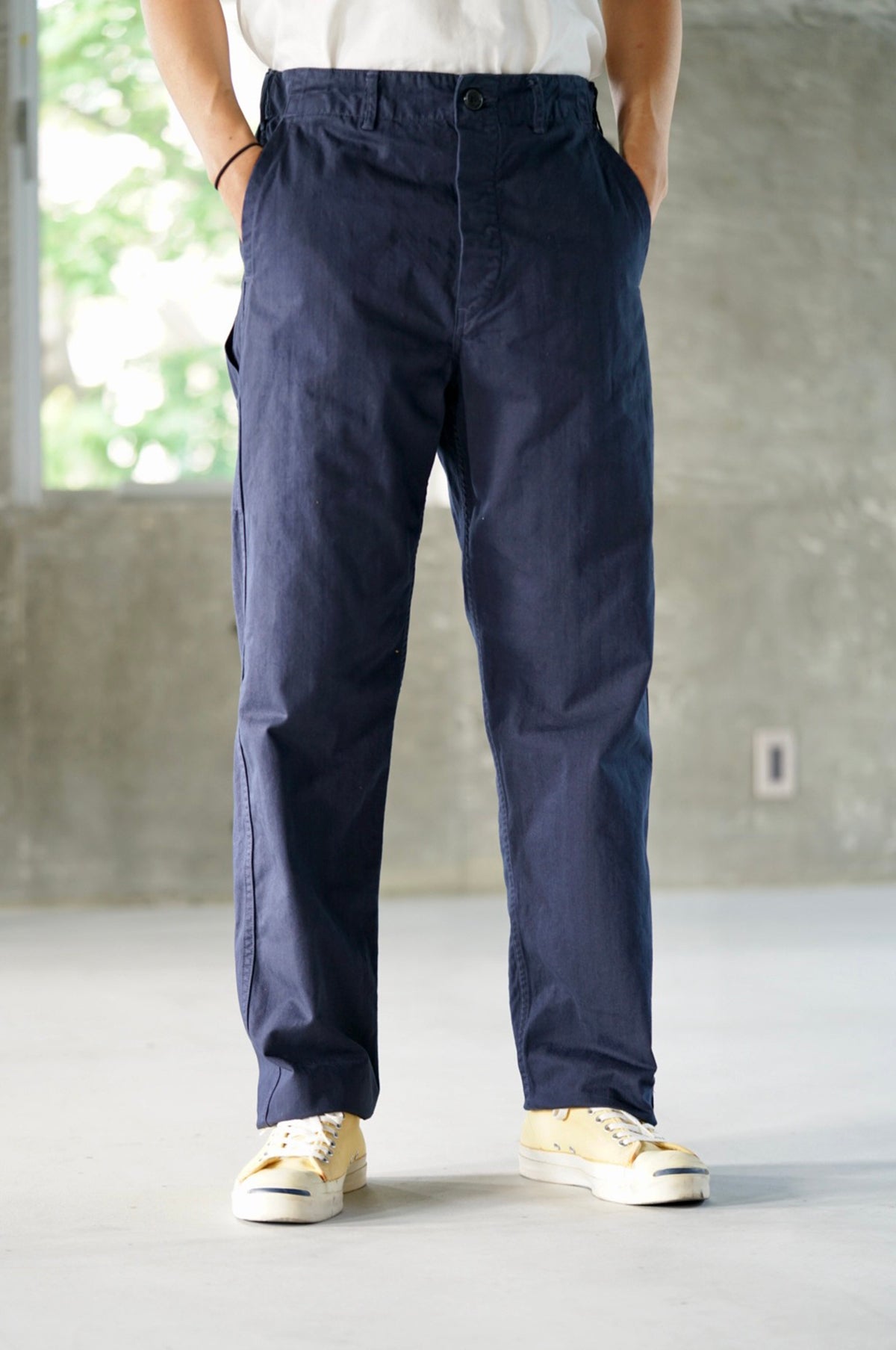 Orslow offer the finest in Japanese craftsmanship using their expertise to create interpretations on Americana classics with a focus of fabrication. The French Work Pants by orSlow are based on the vintage Artisanal French Workwear style. Made up in a garment dyed Japanese herringbone the work pants feature an elastic waist, button fly, two front slant pockets, two rear patch pockets and single utility pocket on left leg.