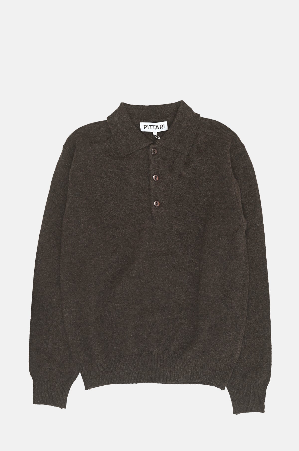 The Long Sleeve Merino Polo in Cocoa brown is Pittari’s refined take on a wardrobe staple. Knitted in extra-soft lambswool, it’s finished with a classic three-button placket and ribbed cuffs for a clean, minimal look. Ideal for smart-casual layering.