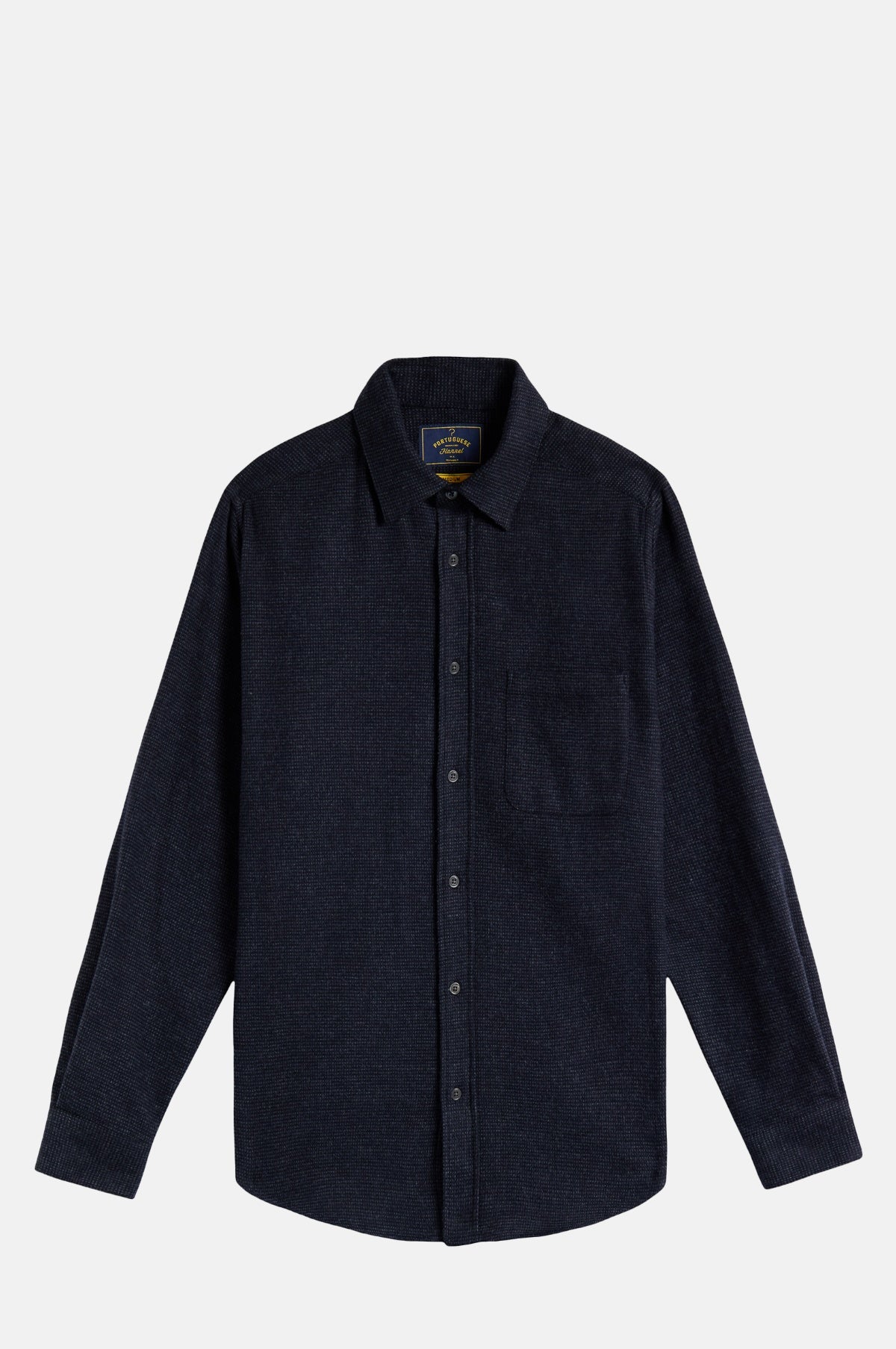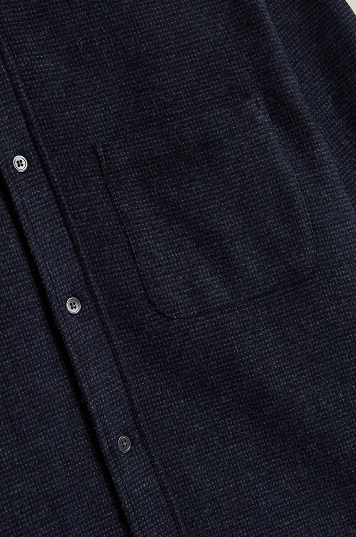 The Sounds Shirt from Portuguese Flannel is constructed of a super soft brushed cotton making it great for the cooler months, finished with a simple chest pocket, subtle check and regular collar making it incredibly versatile whether you choose to dress it up or down. In person, the overall colour reads as a dark navy. Within the micro plaid there is dark navy, purple and black.