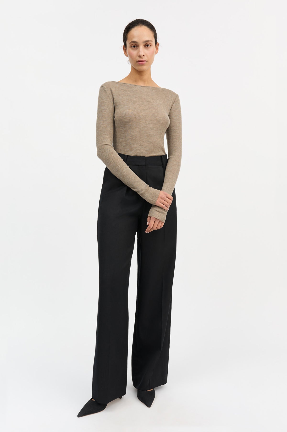 The Amy Wide Neck Blouse is knitted in a fine rib in 100% organic merino wool and fits close to the body. It has a wide boat neckline, long, narrow sleeves and the seams are delicately finished with baby lock stitching. A great piece for layering or when you want to foundation pieces to look as good as your outerwear.