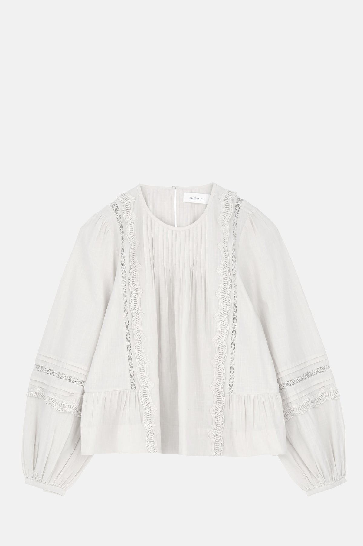 Designing beautiful, versatile pieces made from luxurious fabrics is part of what Skall Studio do best, and the Leaf Blouse epitomises this in spades. Made from a crisp cotton poplin, it has delicate tucks falling from its round collar - creating a flattering silhouette. Lace inserts run down the front and back of the blouse and across the balloon sleeves that are gathered into finely bound cuffs. With a relaxed fit offering freedom of movement, its loose shape allows it to fall freely on the body making this a great all-rounder that is easily dressed up or down.
