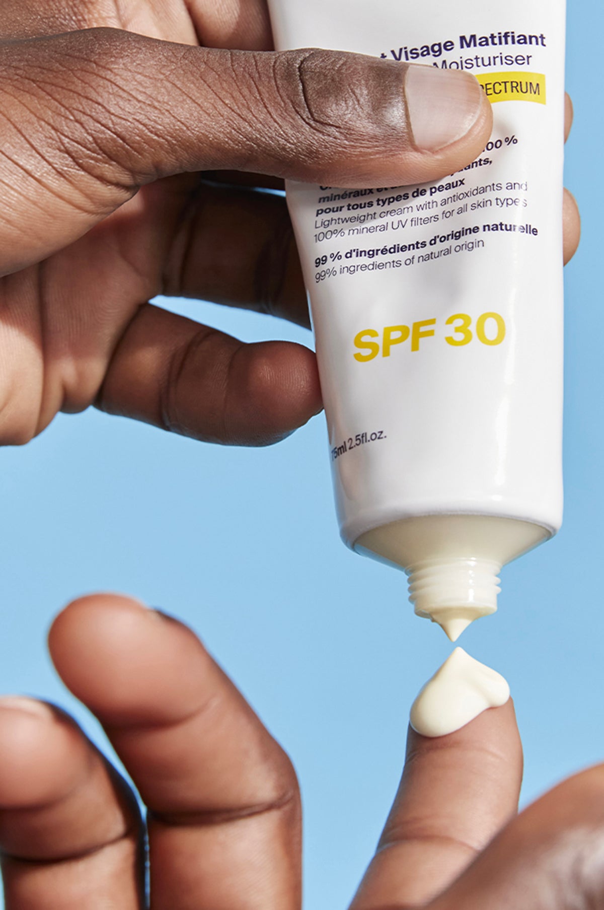 This naturally-derived Mattifying Face Moisturiser SPF30 hydrates and protects your skin. Its 100% mineral filter protects against UV rays (including UVA and UVB) that are responsible for premature skin ageing. Its fluid formula mattifies without feeling sticky, leaves no white traces and makes the skin more supple.