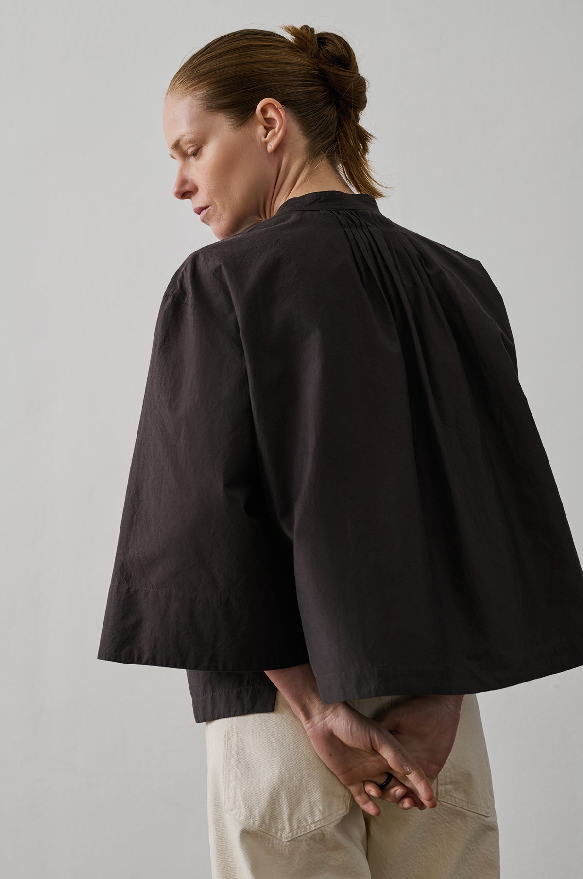 Crafted from a crinkled, lightly textured poplin the loose fit and wide sleeves on this blouse from Soeur create an elegant, airy silhouette. The colour of dark espresso, it will effortlessly integrate into your pre-existing wardrobe and can be worn with any type of trousers, from classic tailoring to more relaxed denim.