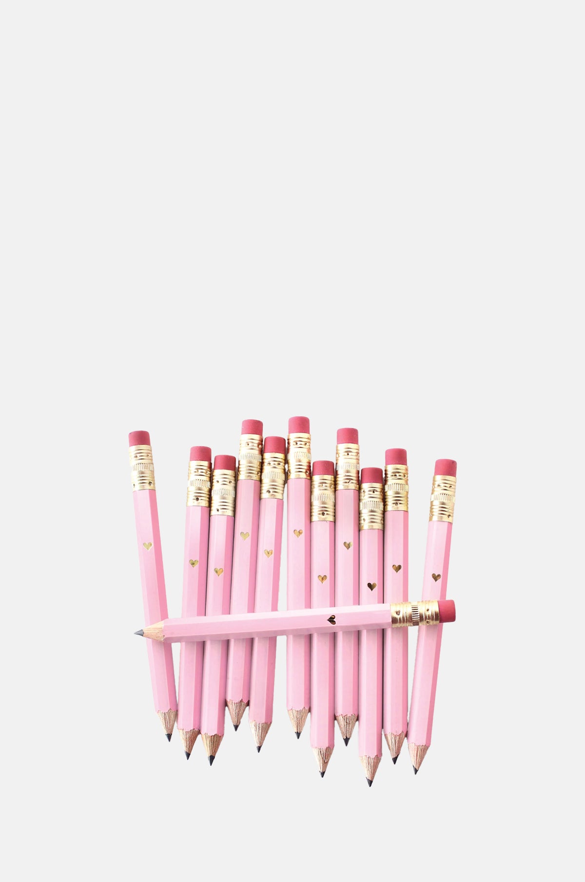 These mini pencils are the sweetest! Bundled in a pack of 12, these pink pencils are foil-imprinted with the tiniest gold heart. A must have for party games - they are finished with a gold ferrule and topped with a red rubber.