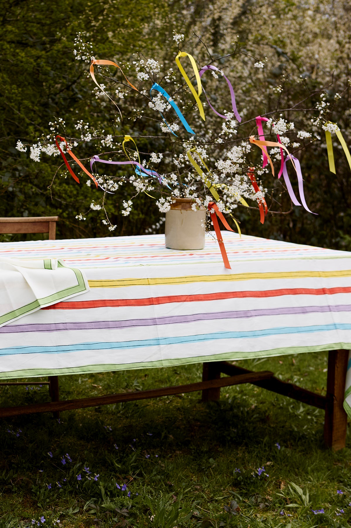 This charming collaboration between Scribble & Daub and Daydress is composed of a whimsical collection of artisan homeware that will bring joy to any well laid table. The joys of summer can never be too far away if you've set your Elsa tablecloth for lunch or supper, just add a jug of wildflowers to complete the idyll. In a gorgeous Schiaparelli inspired rainbow stripe - this will add the loveliest pop of colour to your table and is ideal for dining al fresco.